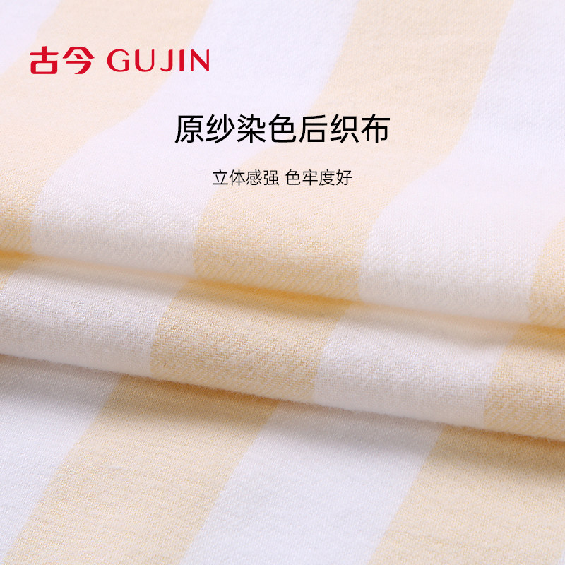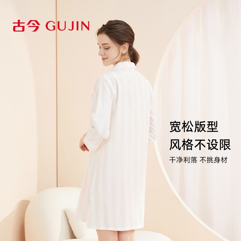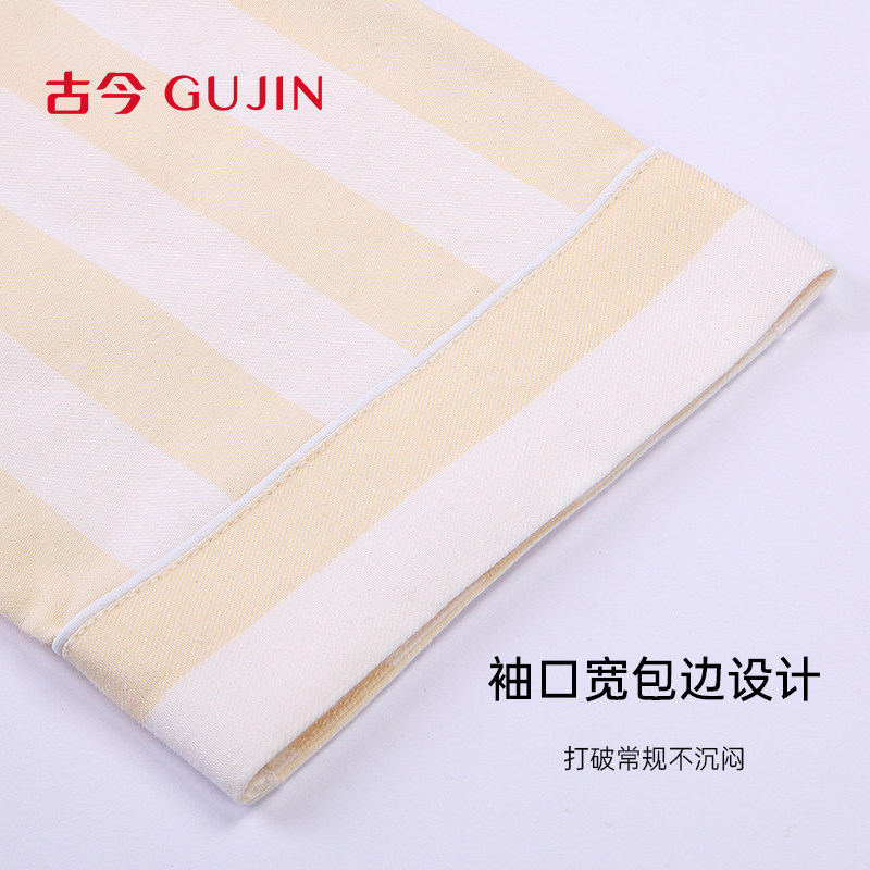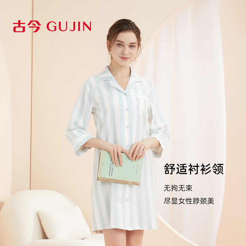 古今内衣商场同款七分袖时尚条纹元素小翻领棉质家居睡裙
