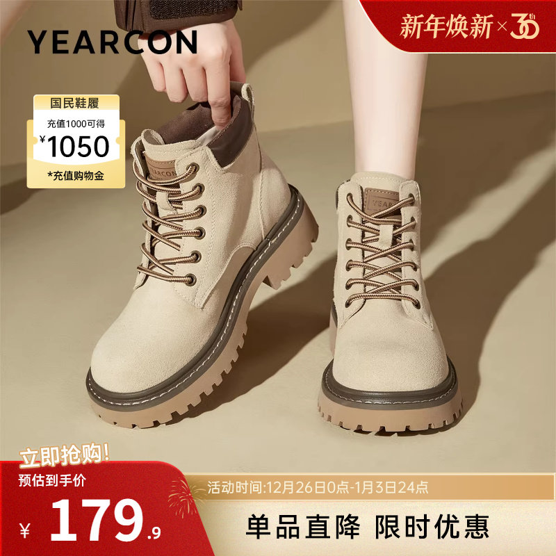 意尔康女鞋秋冬复古休闲马丁靴粗跟单靴英伦厚底户外短靴女士皮鞋