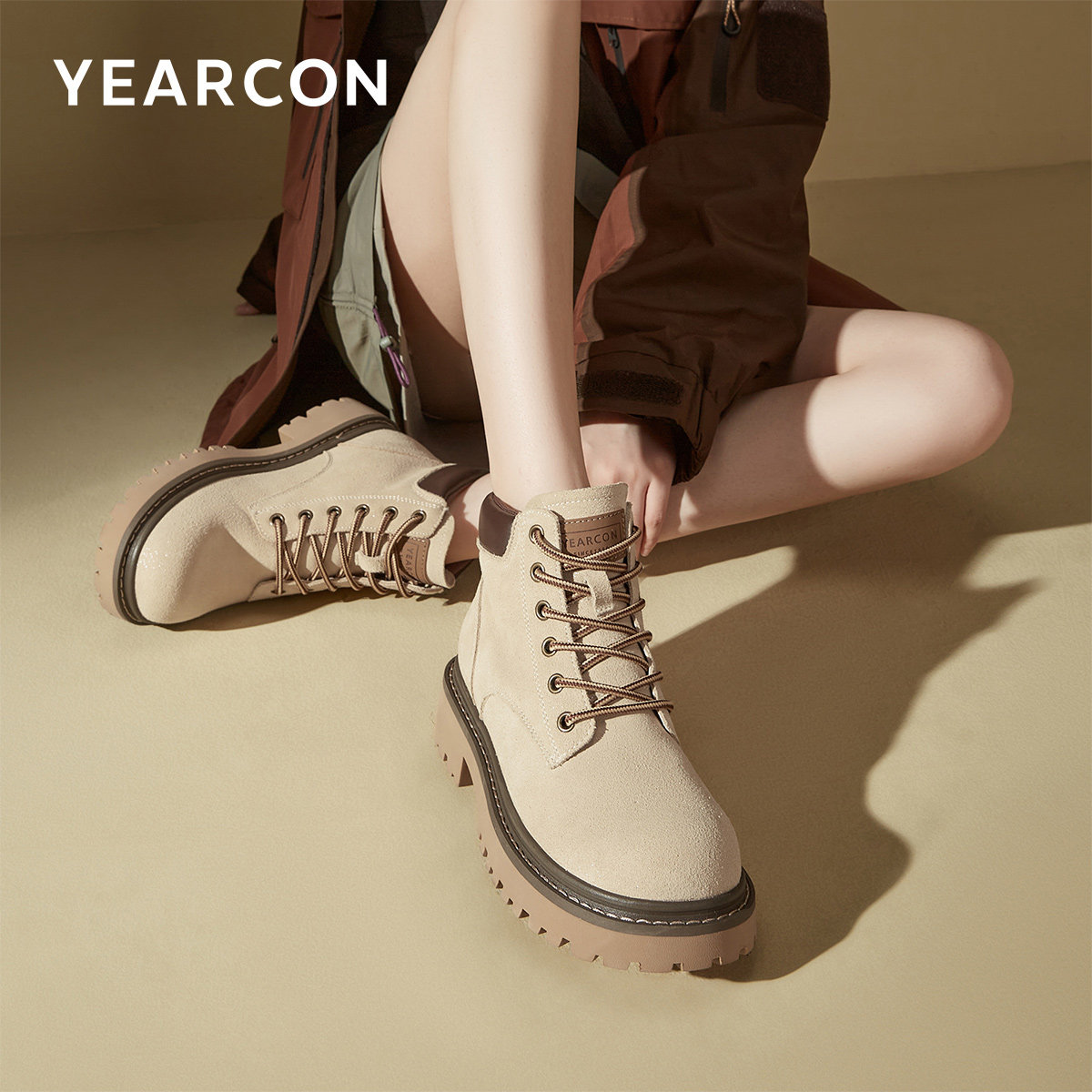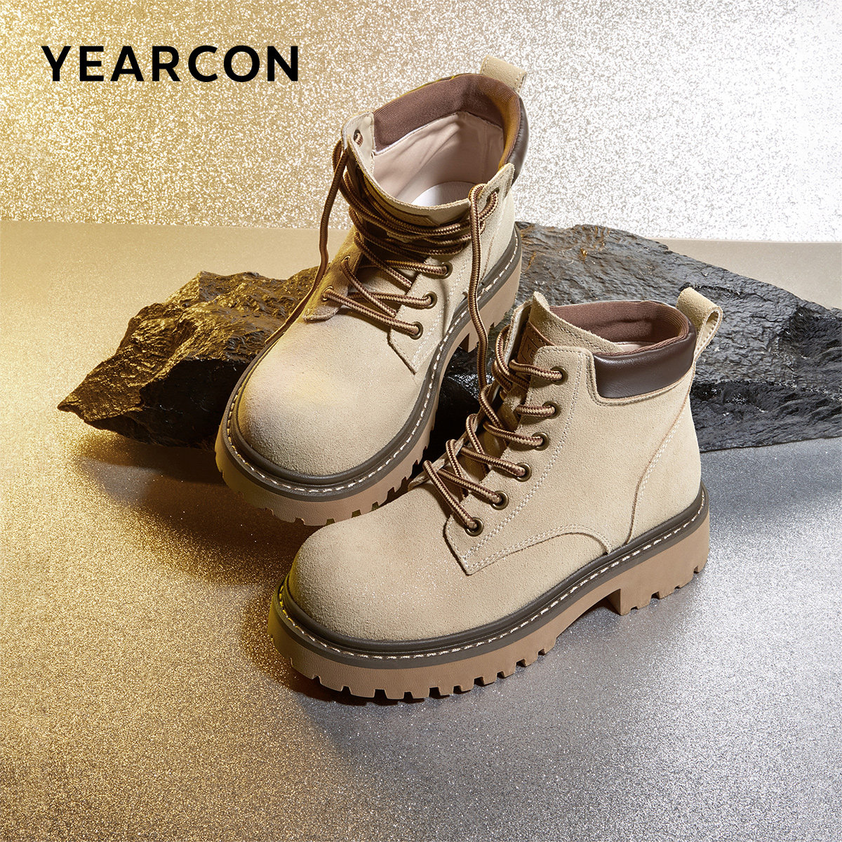 外贸工厂尾货真皮厚底增高马丁靴女秋季户外登山大黄靴休闲工装靴
