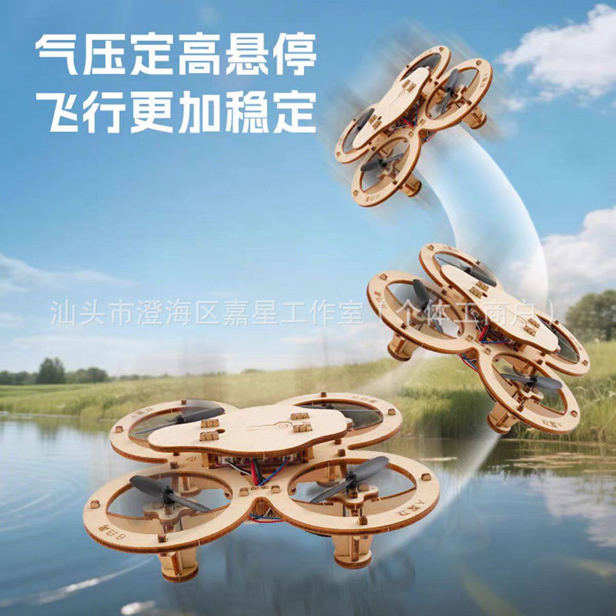 爆款木质拼装DIY无人机科技制作飞行器模型学校实验遥控飞机材料
