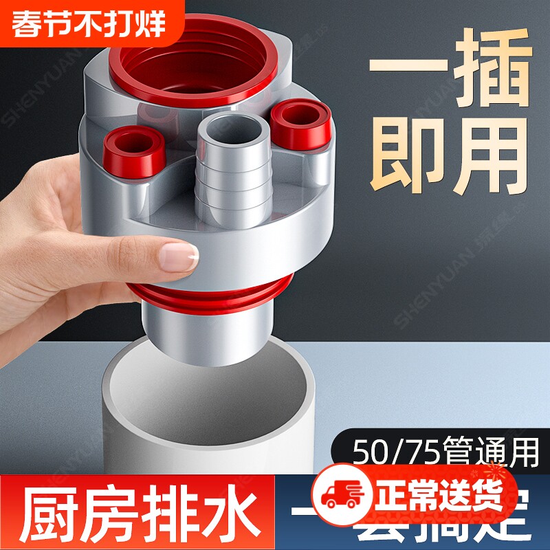 厨房下水管三头通水槽排水管洗碗机分水器净水器下水道防返臭神器