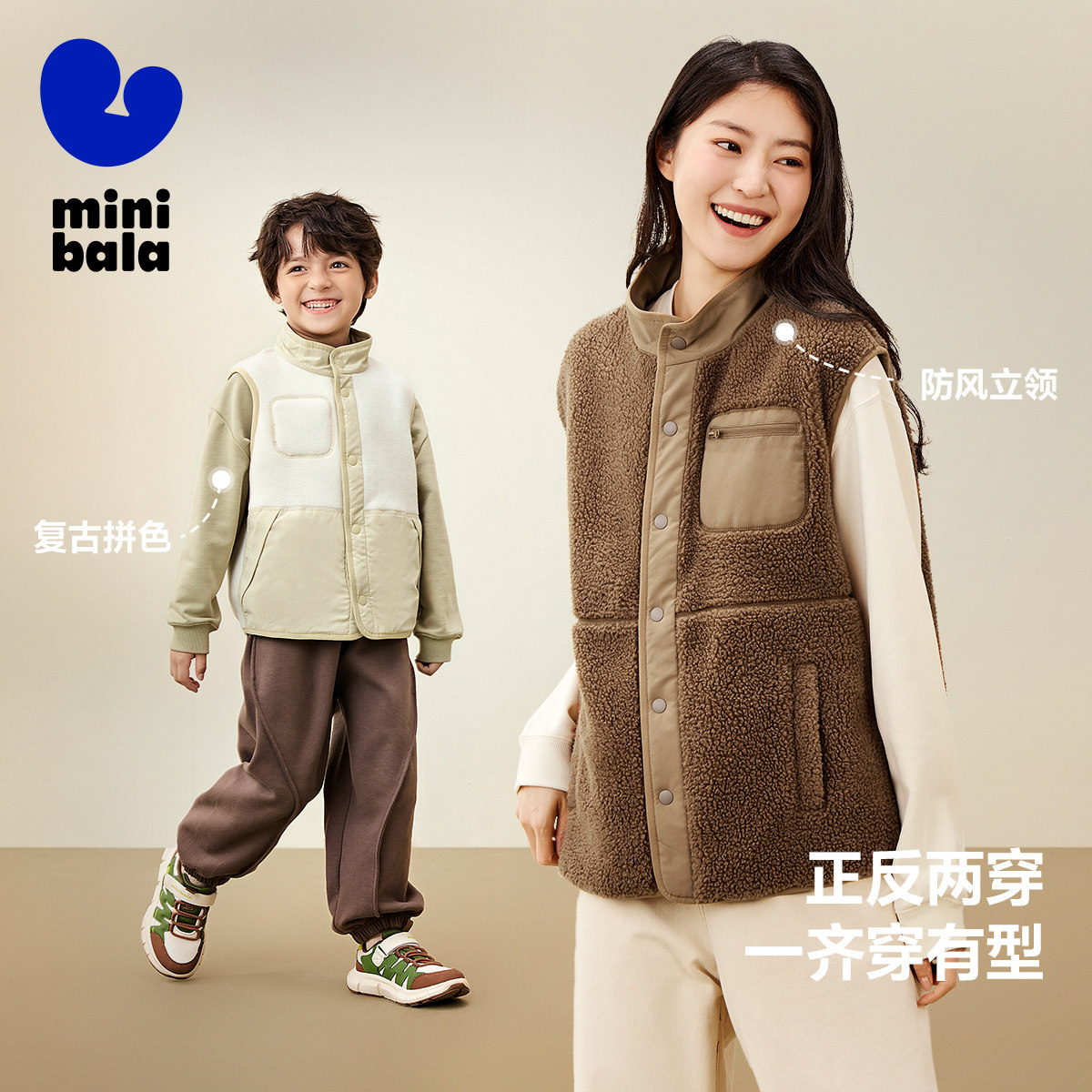 【mini亲子】迷你巴拉巴拉宝宝抗静电两面穿毛绒马甲保暖亲子装冬