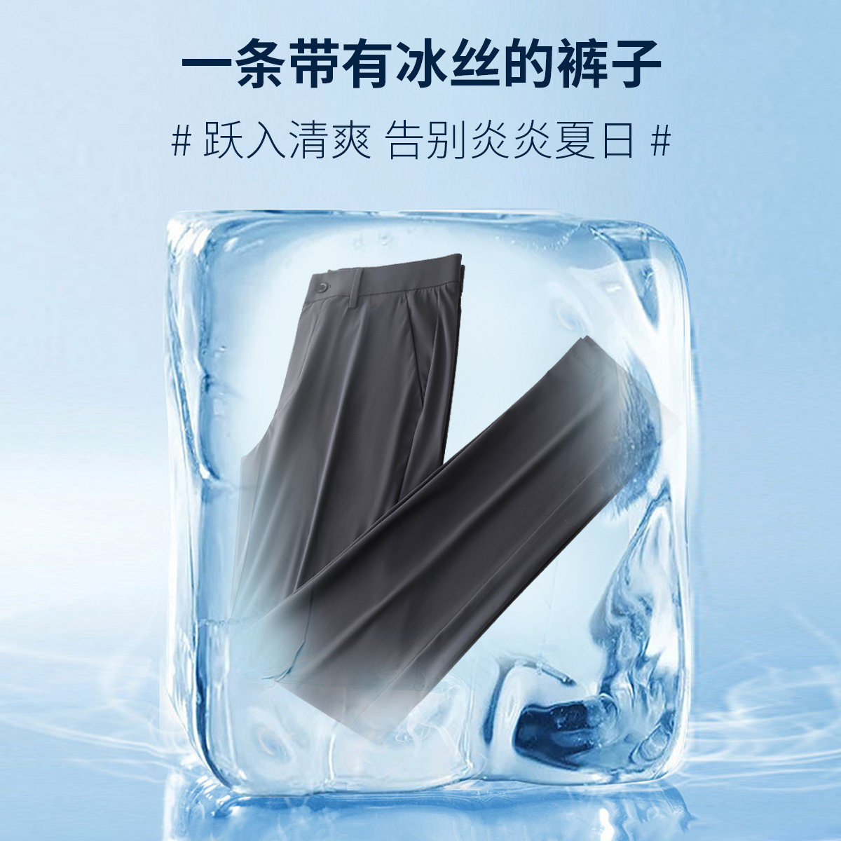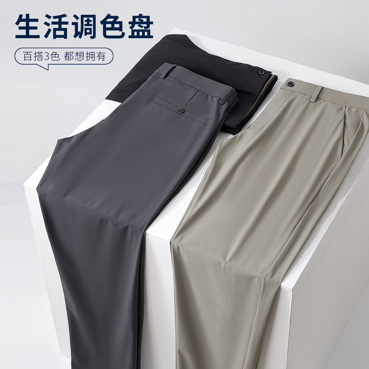 圣得西男士时尚冰丝休闲裤2025年冬款弹力百搭薄款直筒长裤潮