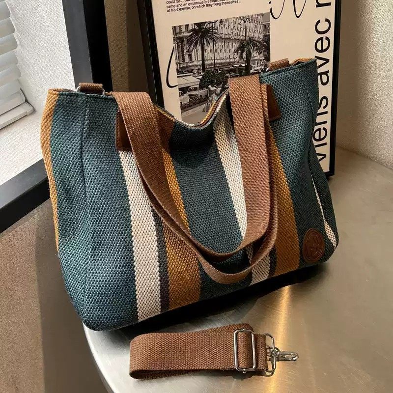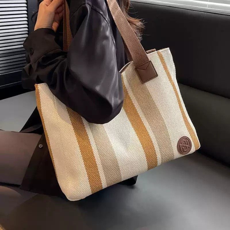 休闲大容量帆布托特包包女2025新款时尚外出手提购物袋通勤单肩包