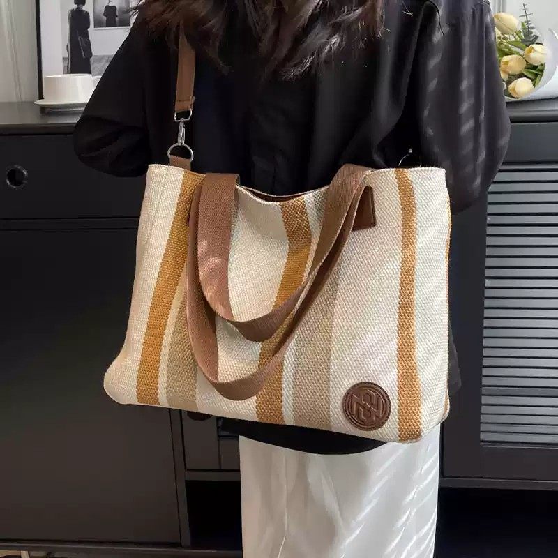 外出通勤包女大容量包包2025新款休闲大学生上课包帆布单肩托特包