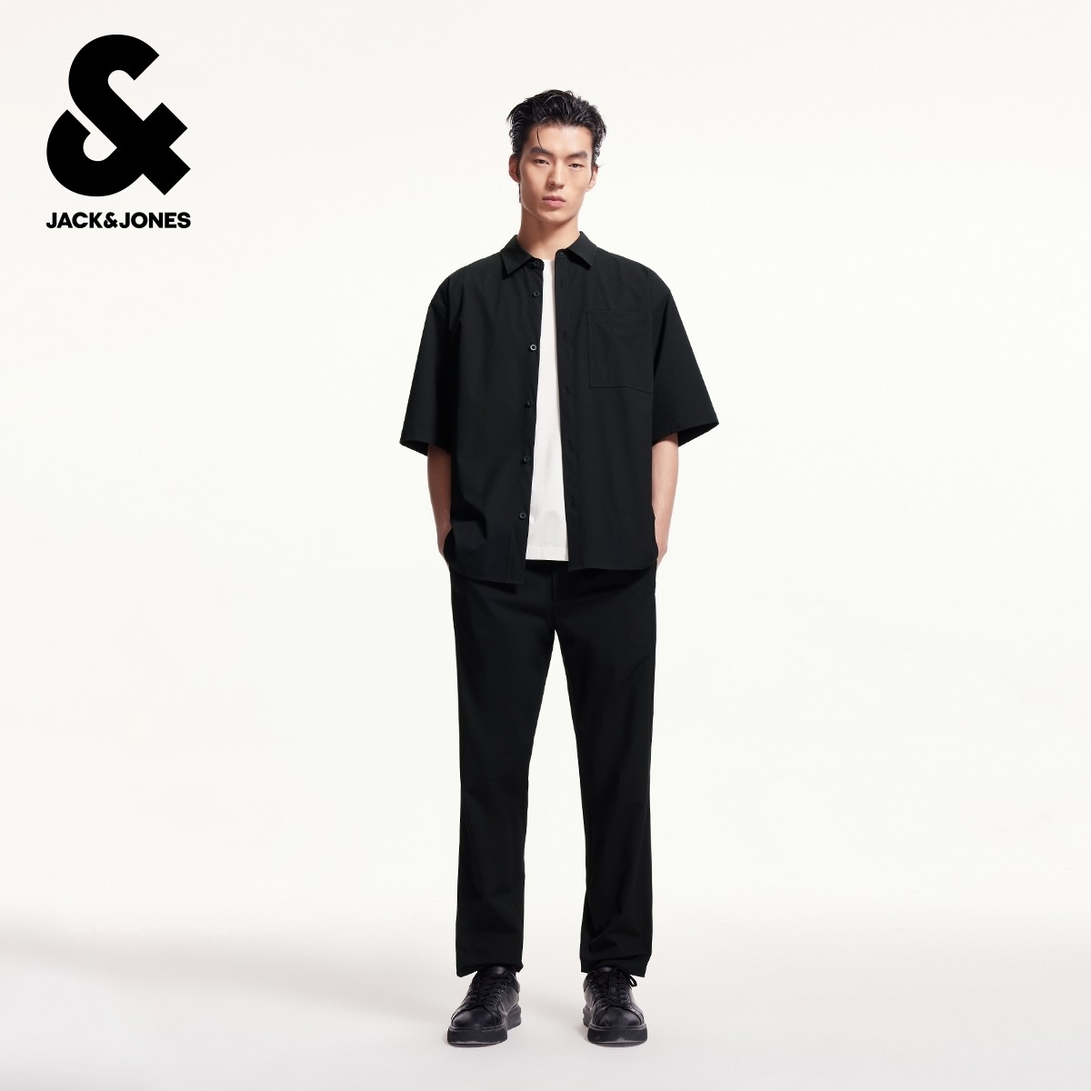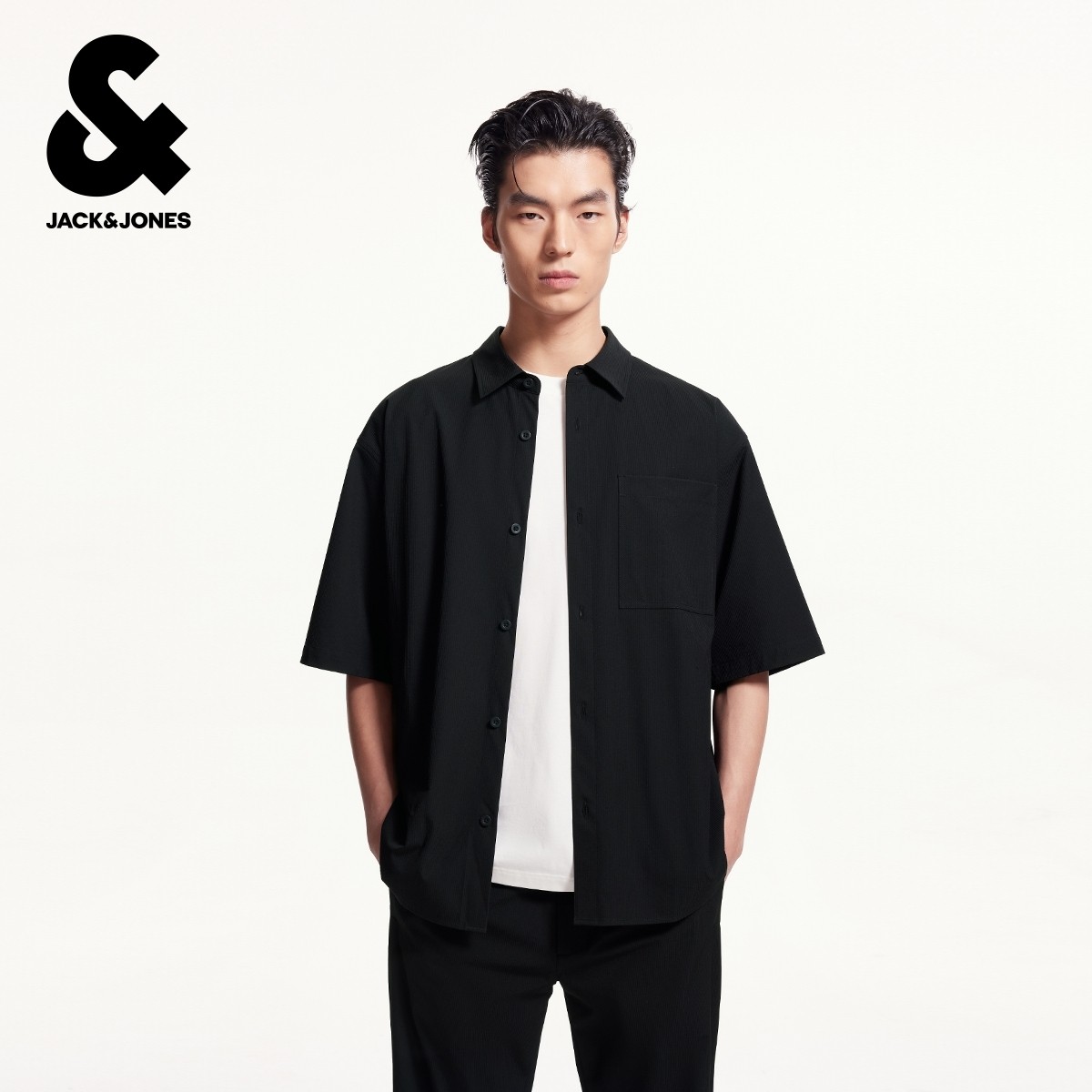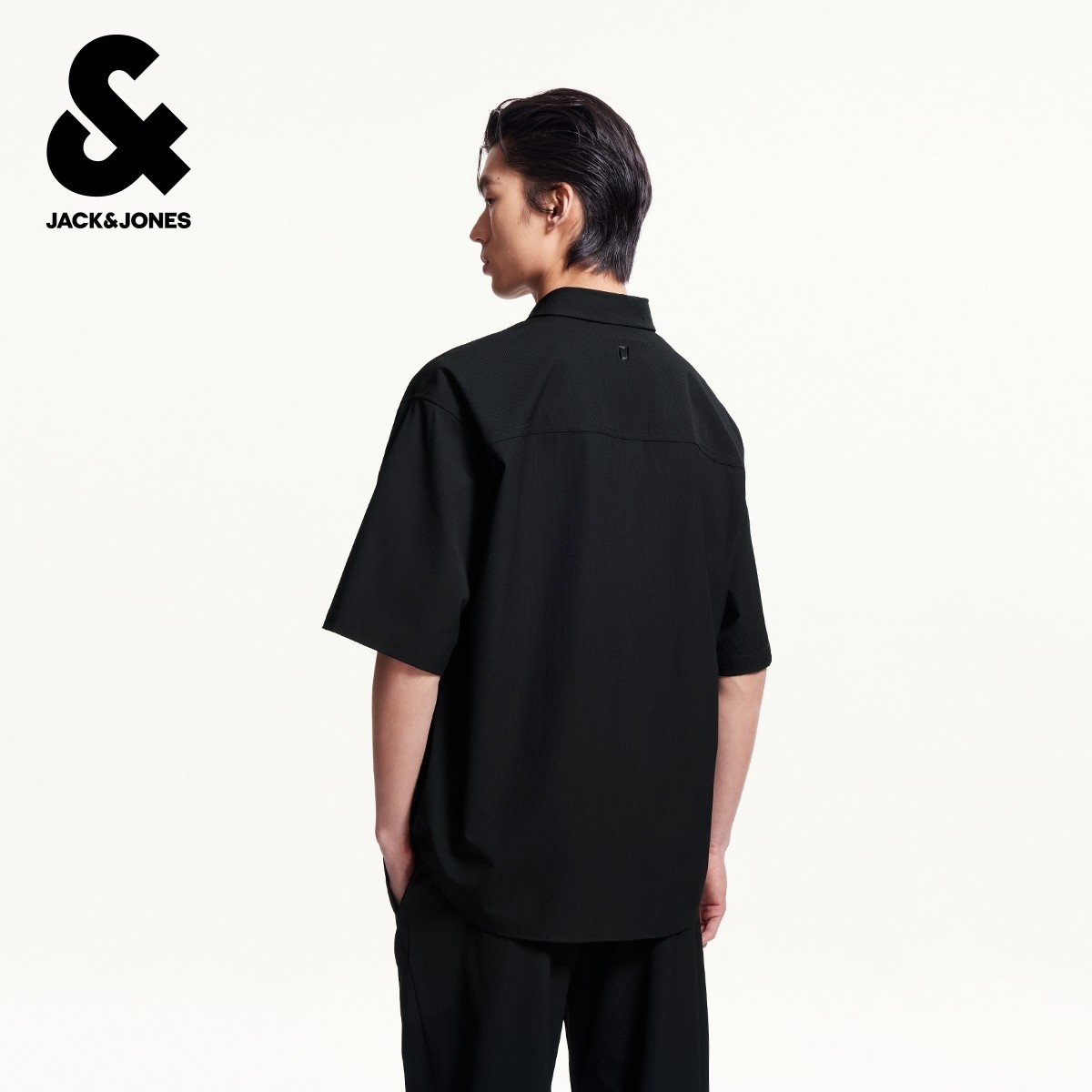杰克琼斯奥特莱斯夏季男装舒适时尚宽松质感个性休闲上衣短袖衬衫