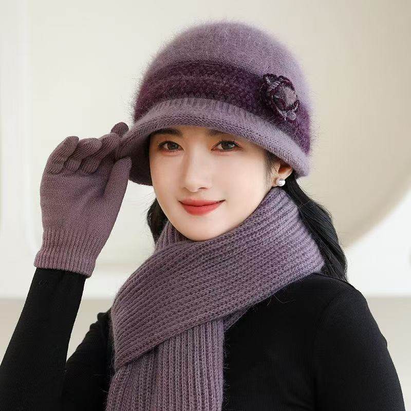 新款中老年人帽子女士秋冬季保暖针织帽加绒妈妈奶奶毛线帽老人帽