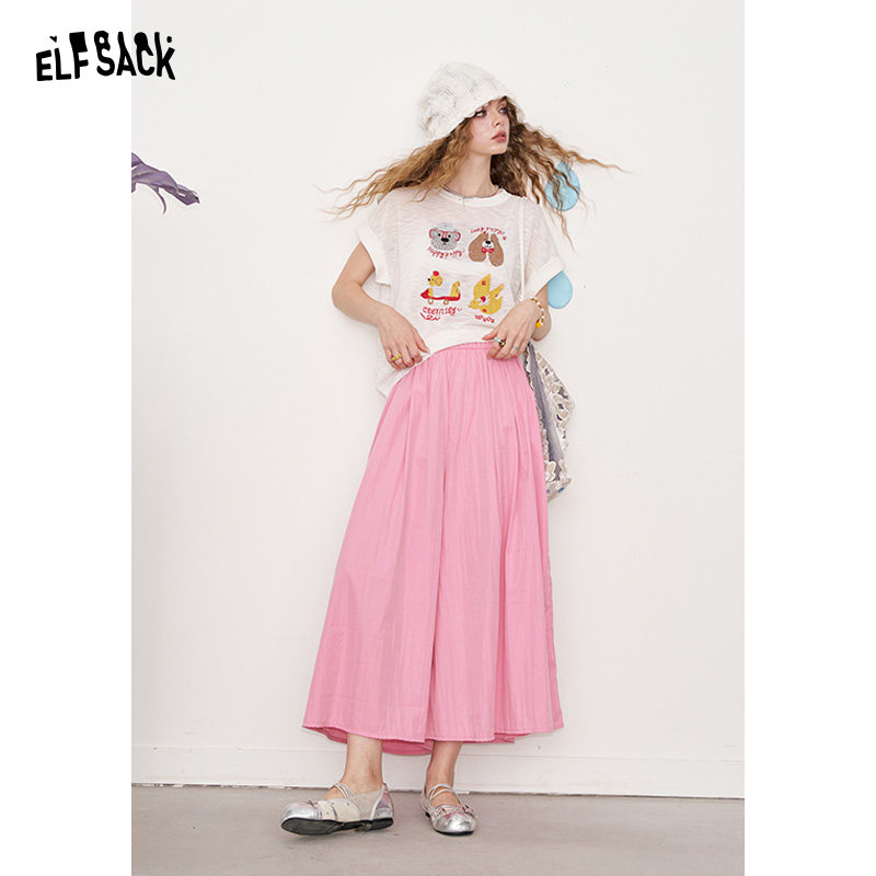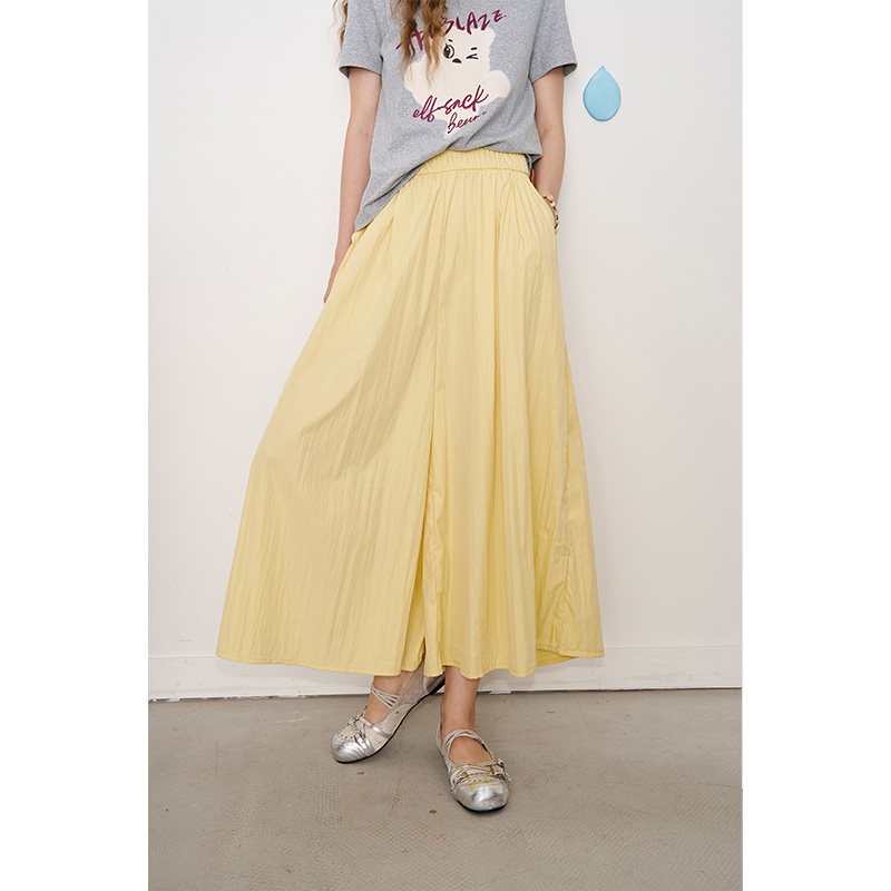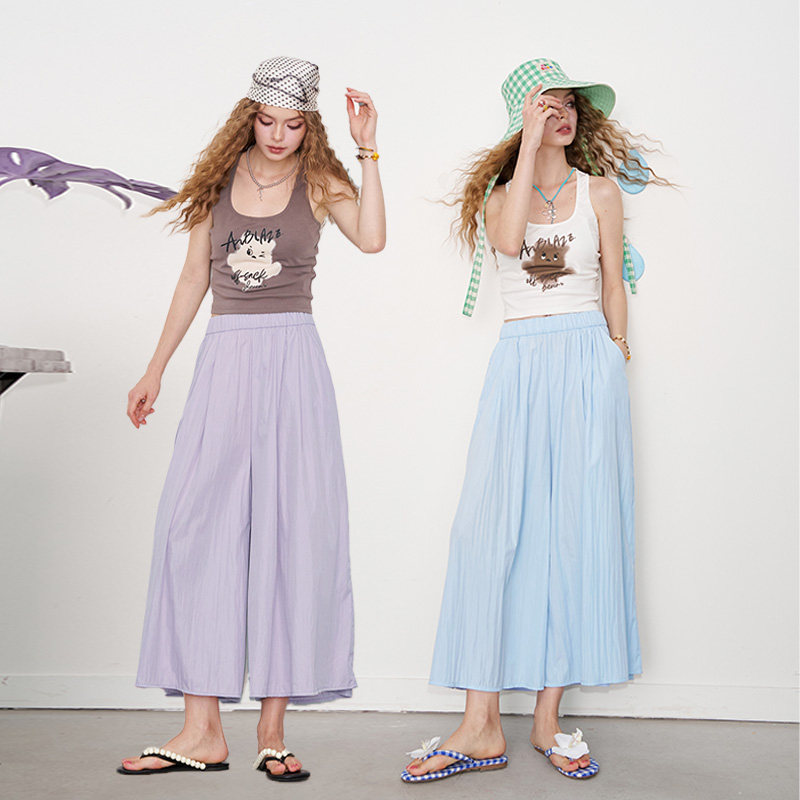 妖精的口袋纯色宽松阔腿裤女2025年夏新高腰显瘦休闲裙裤八分裤
