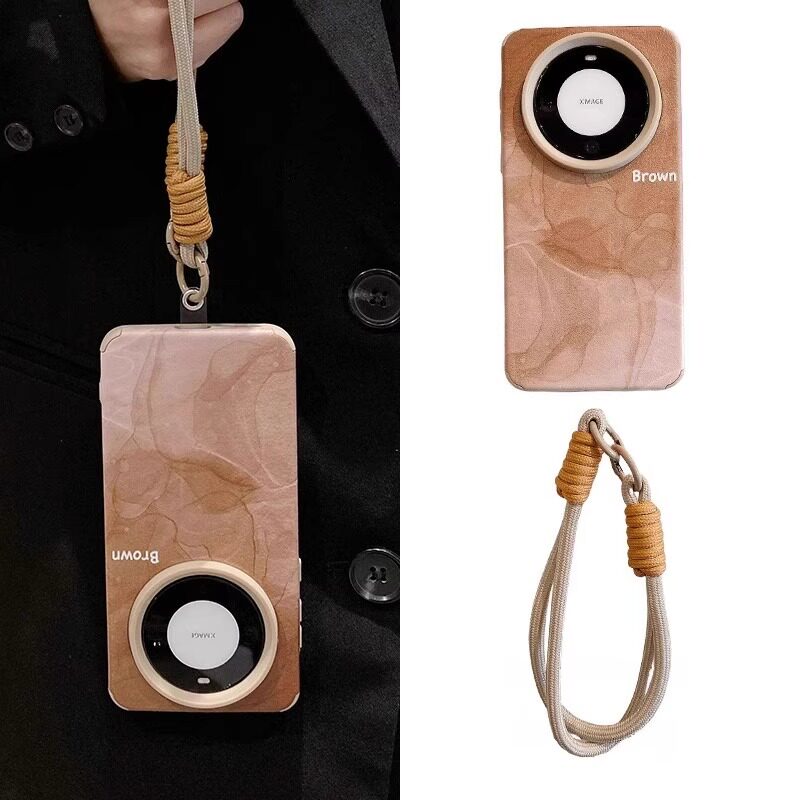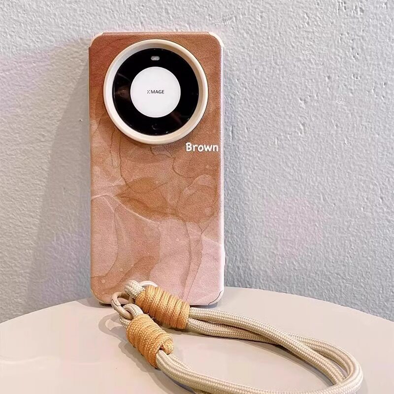 咖色晕染适用华为mate70pro手机壳新款高级感mate70pro+十带手链女款pura70por翻毛皮外壳mete60防摔50保护套