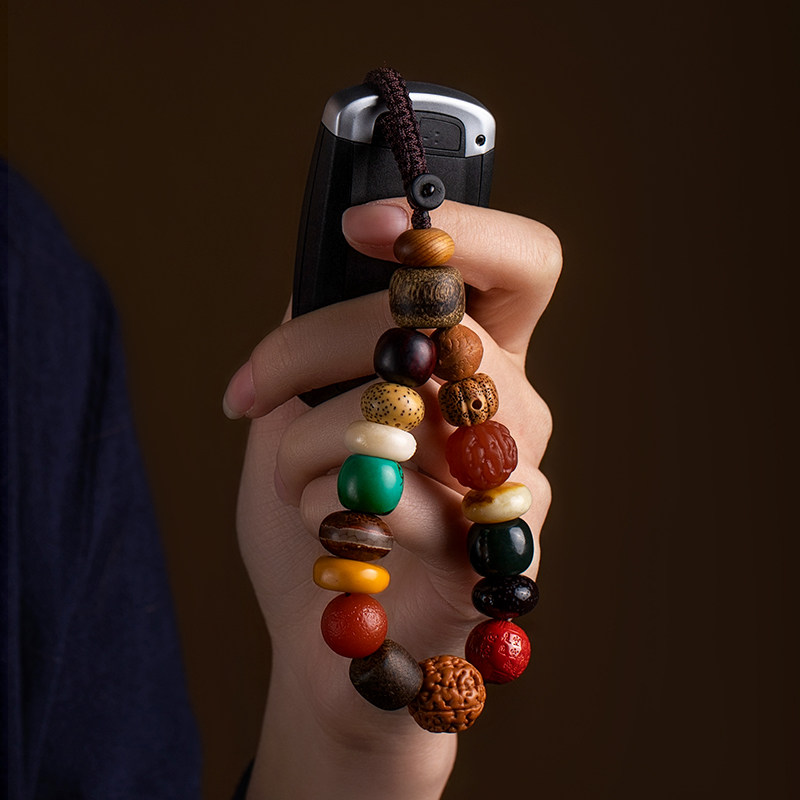 大善堂多宝十八子菩提玛瑙和田玉汽车钥匙扣礼物男士女高档挂件