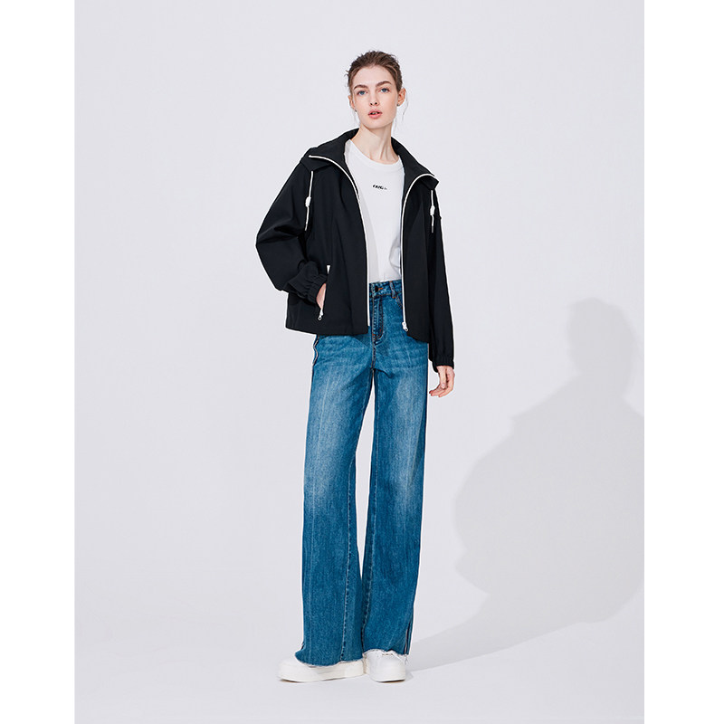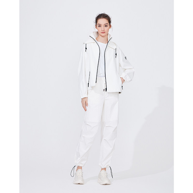 Navigare意大利小帆船白色连帽夹克外套女秋季宽松显瘦休闲茄克