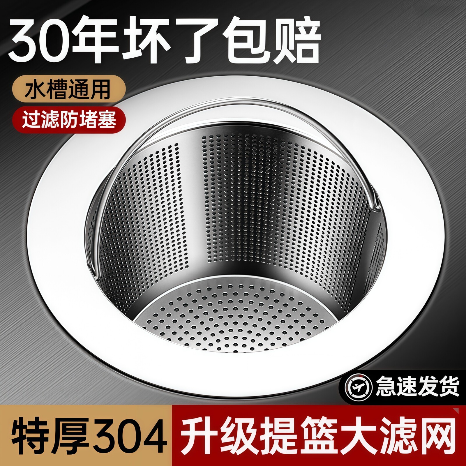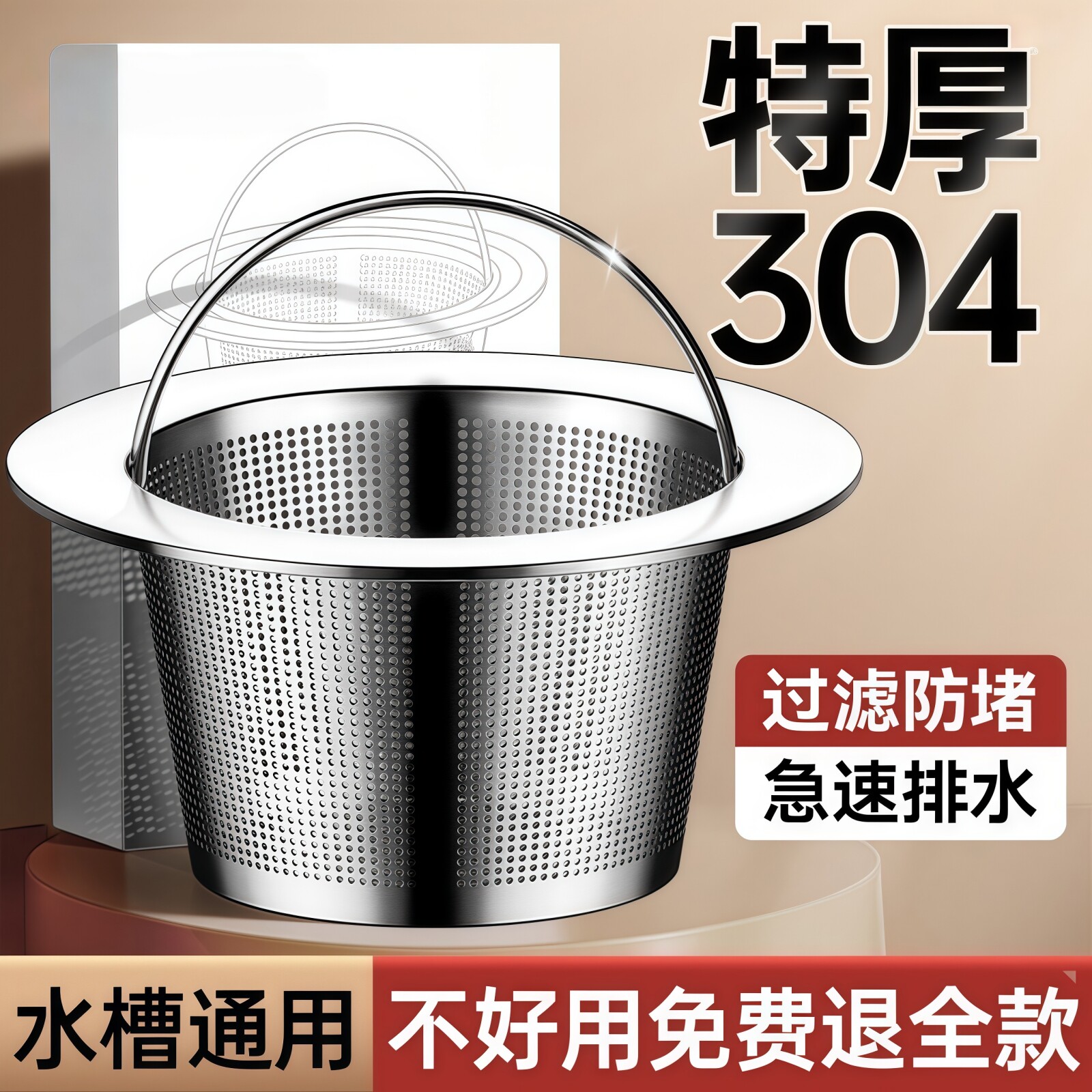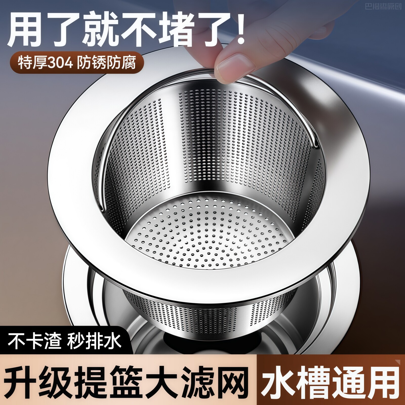 厨房水槽提篮过滤网不锈钢洗菜盆洗碗槽下水道残渣滤网水池过滤器