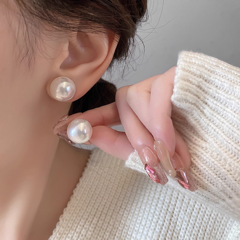 新款复古气质超大颗珍珠耳钉女925纯银高级感ins大圆耳环耳饰女