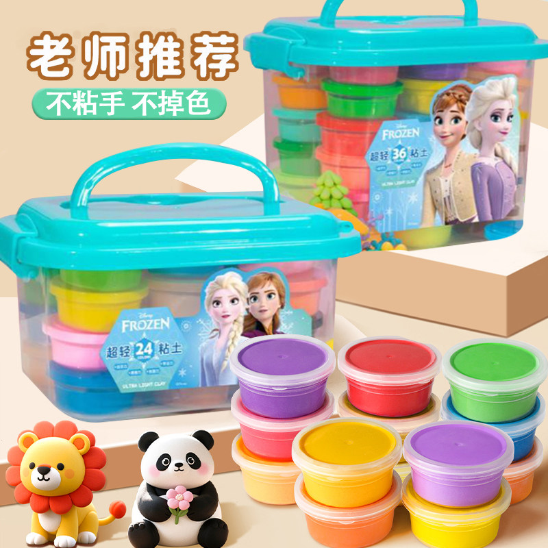 正版迪士尼超轻粘土儿童安全无毒无味diy材料包幼儿园橡皮泥黏土手办24色36色手工制作玩具套装橡胶泥彩泥
