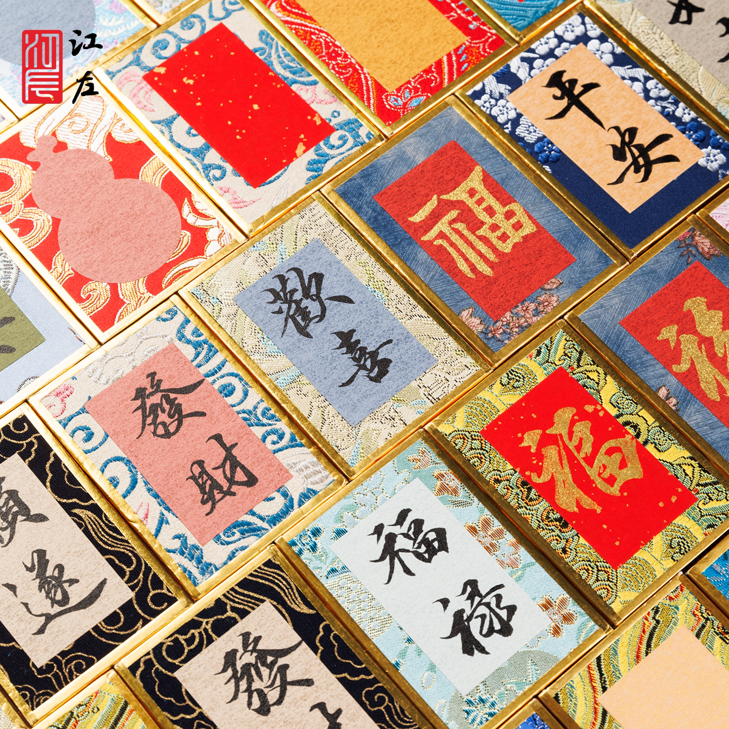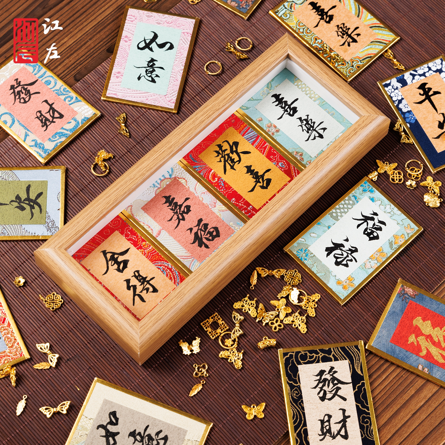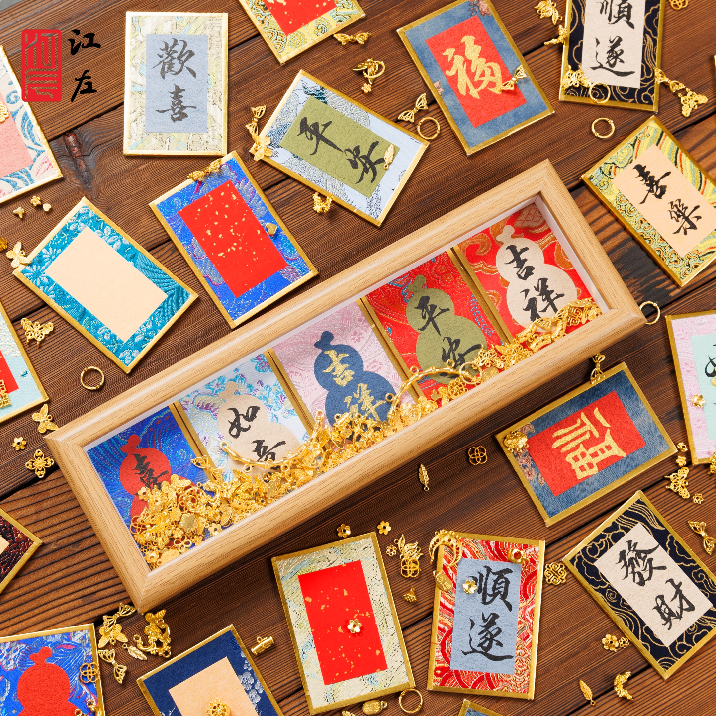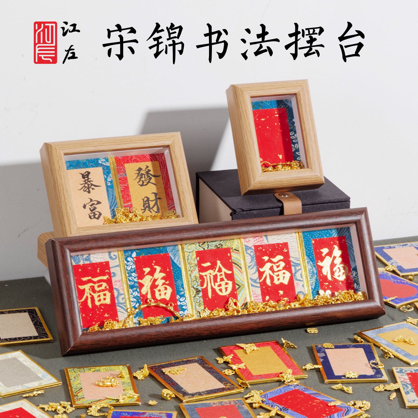 江左宋锦卡纸硬卡相框摆件空白宣纸文创元旦礼品手写书法画框摆台书法卡纸创意宣纸摆台小楷创意礼品硬卡纸