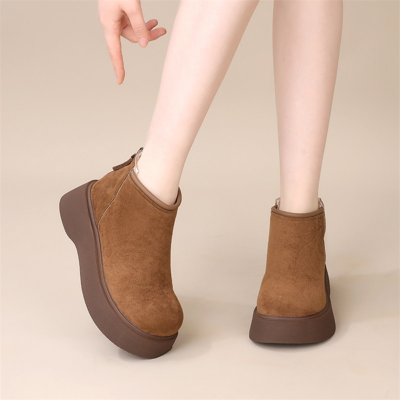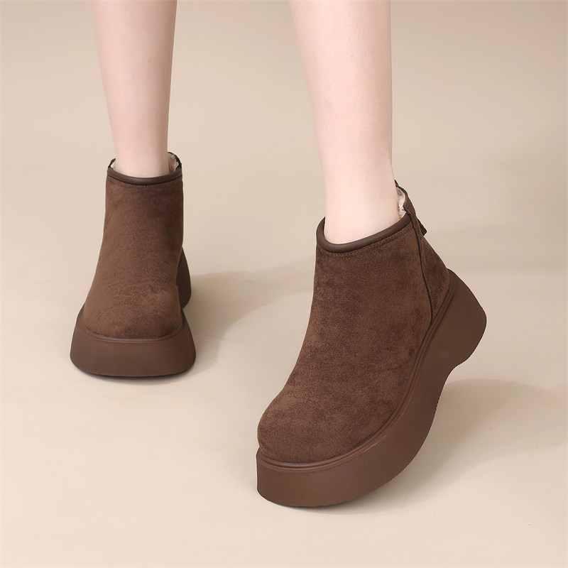 miu家厚底雪地靴女冬季真皮短靴羊毛侧拉链增高厚底加绒毛毛棉鞋