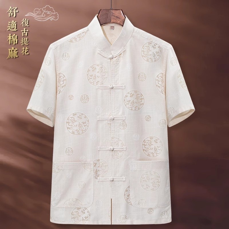 中国风爸爸新中式男装短袖套装衣服中老年人唐装男士衬衫爷爷装夏