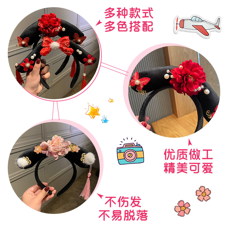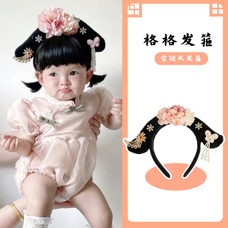 宝宝汉服唐装格格发饰宫廷贵妃发箍娘娘旗头可爱头箍儿童发卡头饰