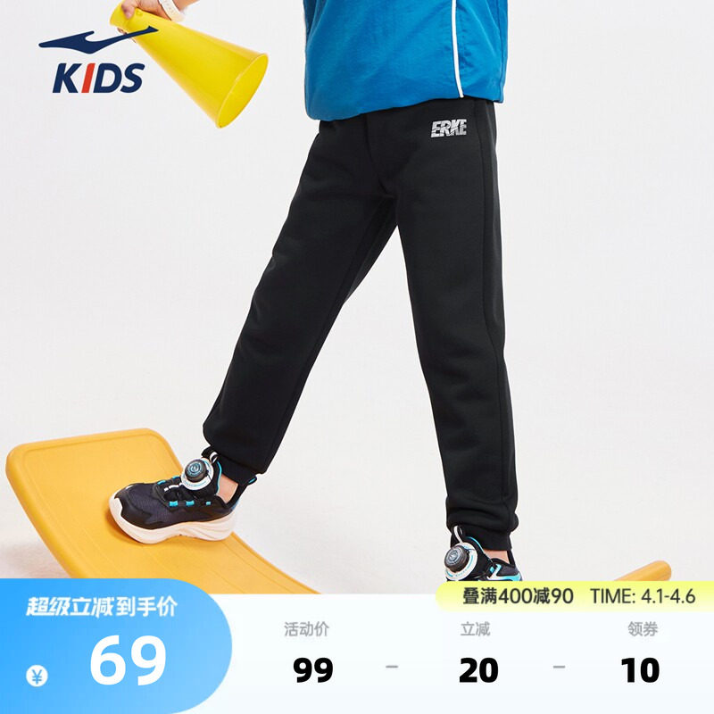 鸿星尔克童装儿童运动裤子春季新款女童长裤男童青少年百搭休闲裤