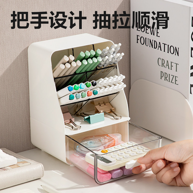 得力斜插式笔筒抽屉文具收纳盒小学生书桌笔桶多功能透明化妆品