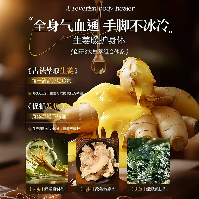 生姜艾草按摩精油全身体通经络排毒开背推拿刮痧驱寒湿官方旗舰店