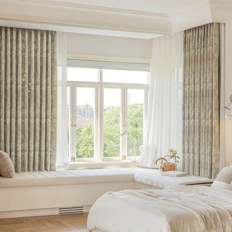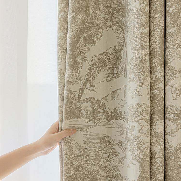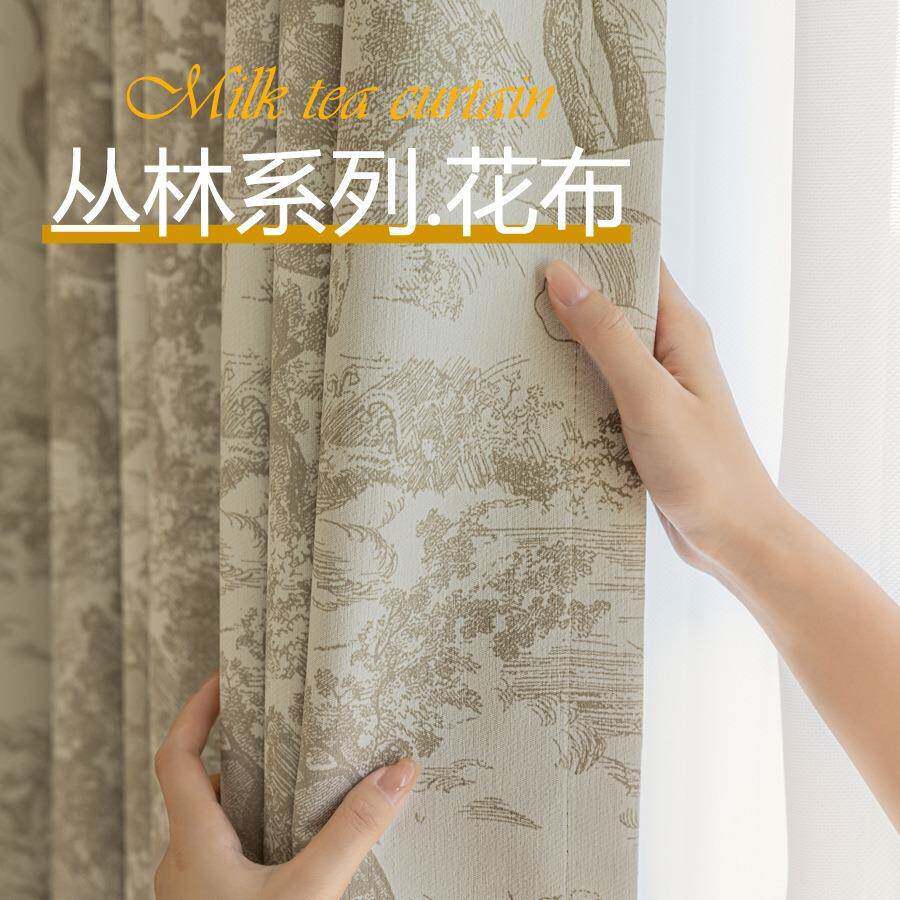 新款法式复古印花奶茶丛林卧室飘窗遮光成品窗帘奶油绵羊绒雪尼尔