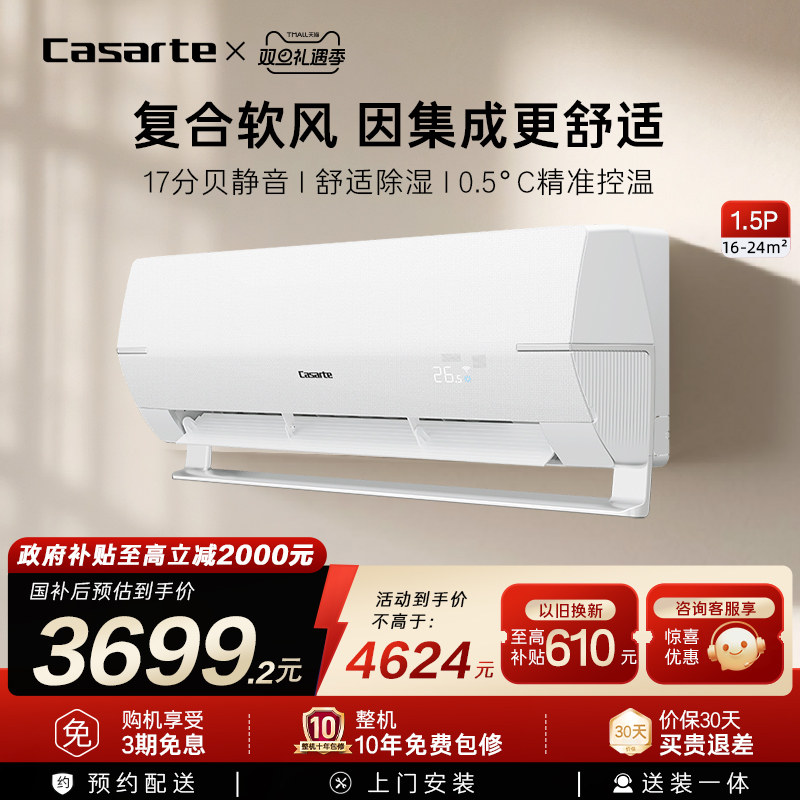 政府补贴卡萨帝空调挂机变频家用卧室除湿冷暖复合软风新1级1.5匹