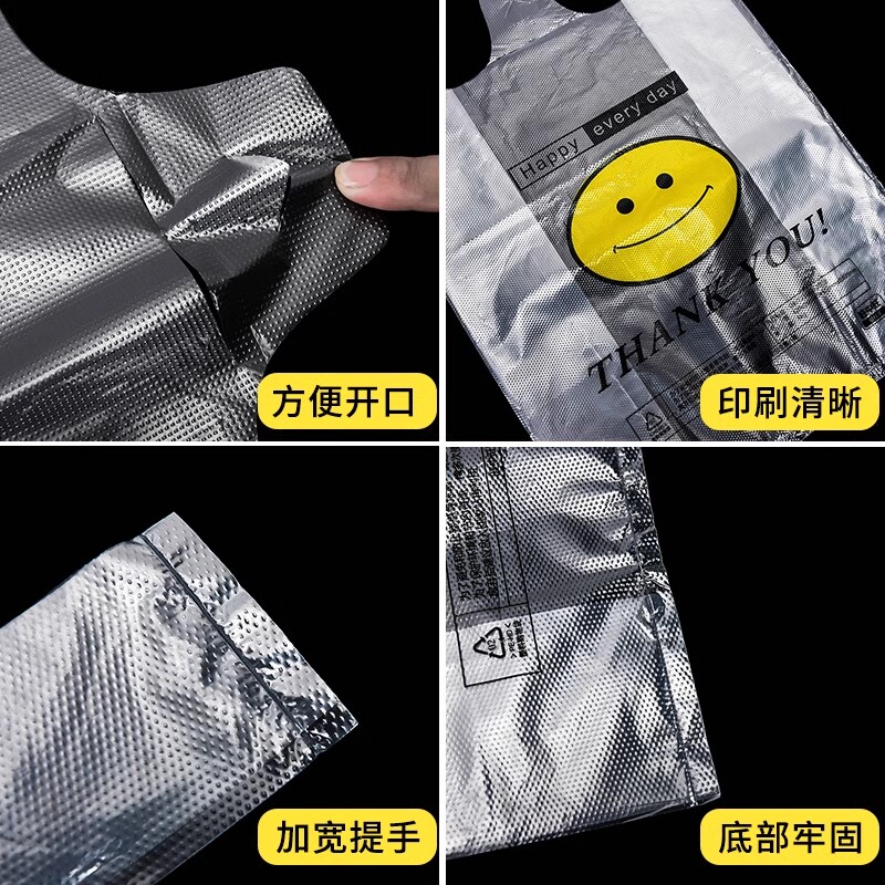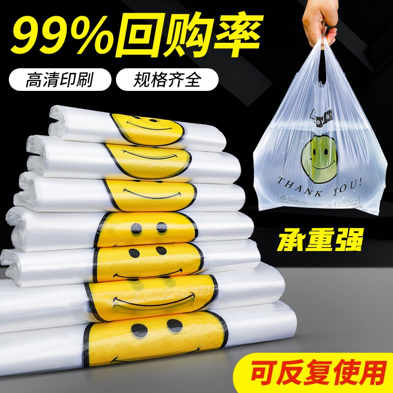 笑脸加厚透明塑料袋外卖垃圾袋商用打包袋购物袋方便手提袋子食品