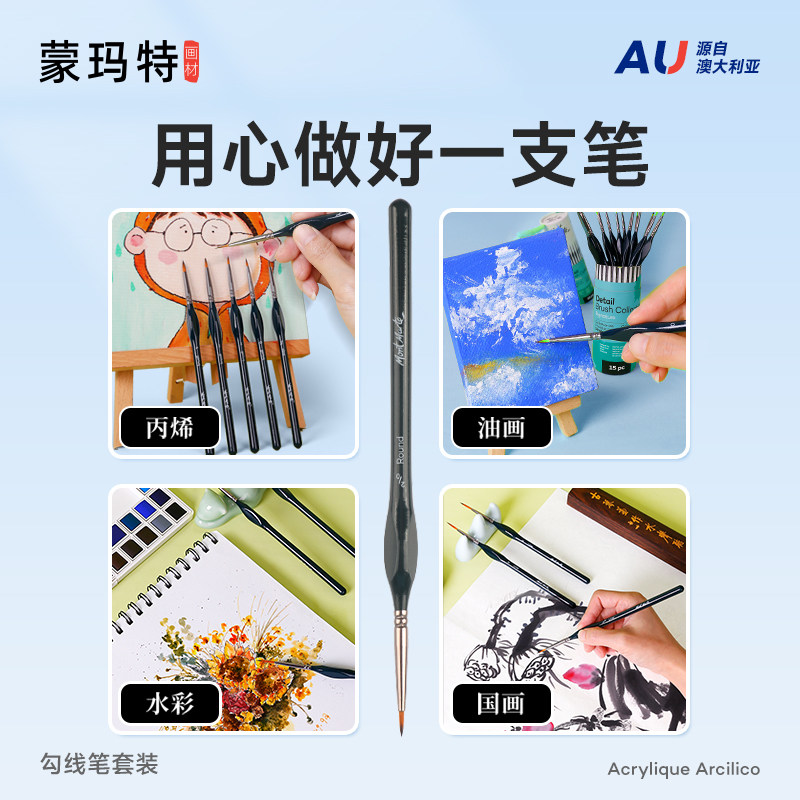 蒙玛特 勾线笔极细画笔套装尼龙水粉笔描边丙烯画水彩画国画油画美术生专用面相笔学生绘画勾勒工笔