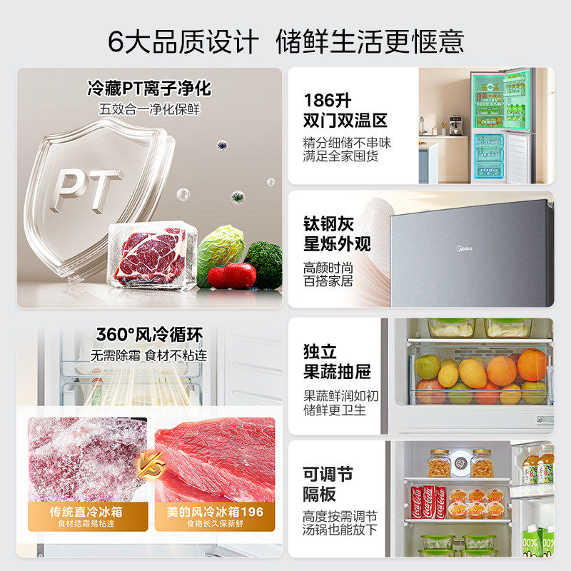 【政府补贴】美的196小型家用租房全空间养鲜风冷免除霜节能冰箱