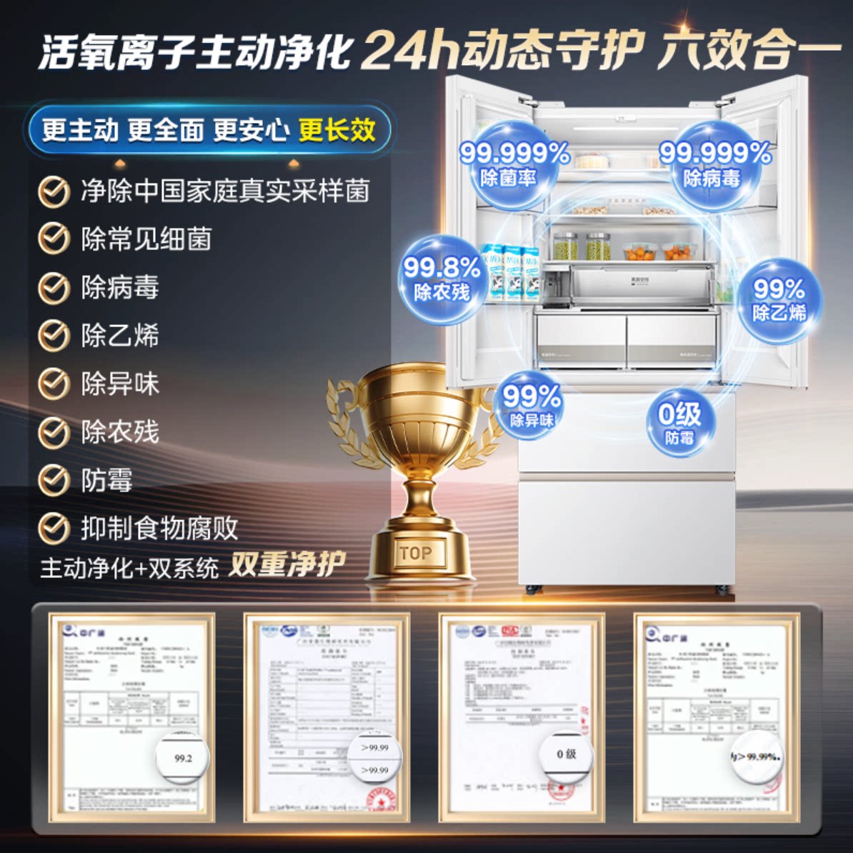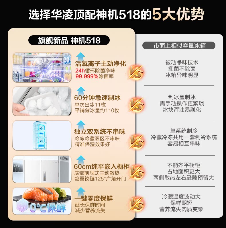 美的出品华凌神机小宙斯518双系统超薄零嵌自动制冰法式四门冰箱