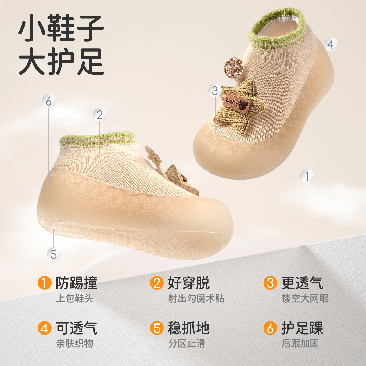 婧麒宝宝地板鞋袜6-12个月婴儿学步袜鞋室内防滑软底隔凉男女童鞋