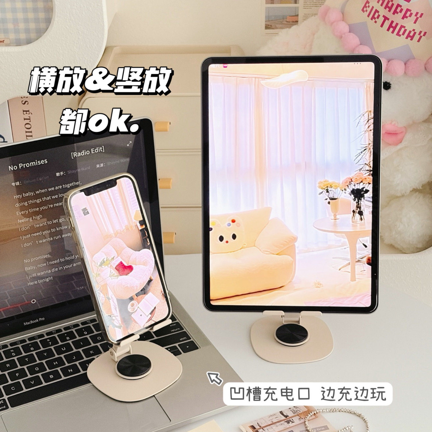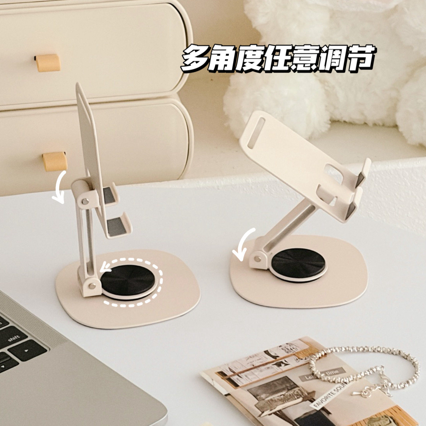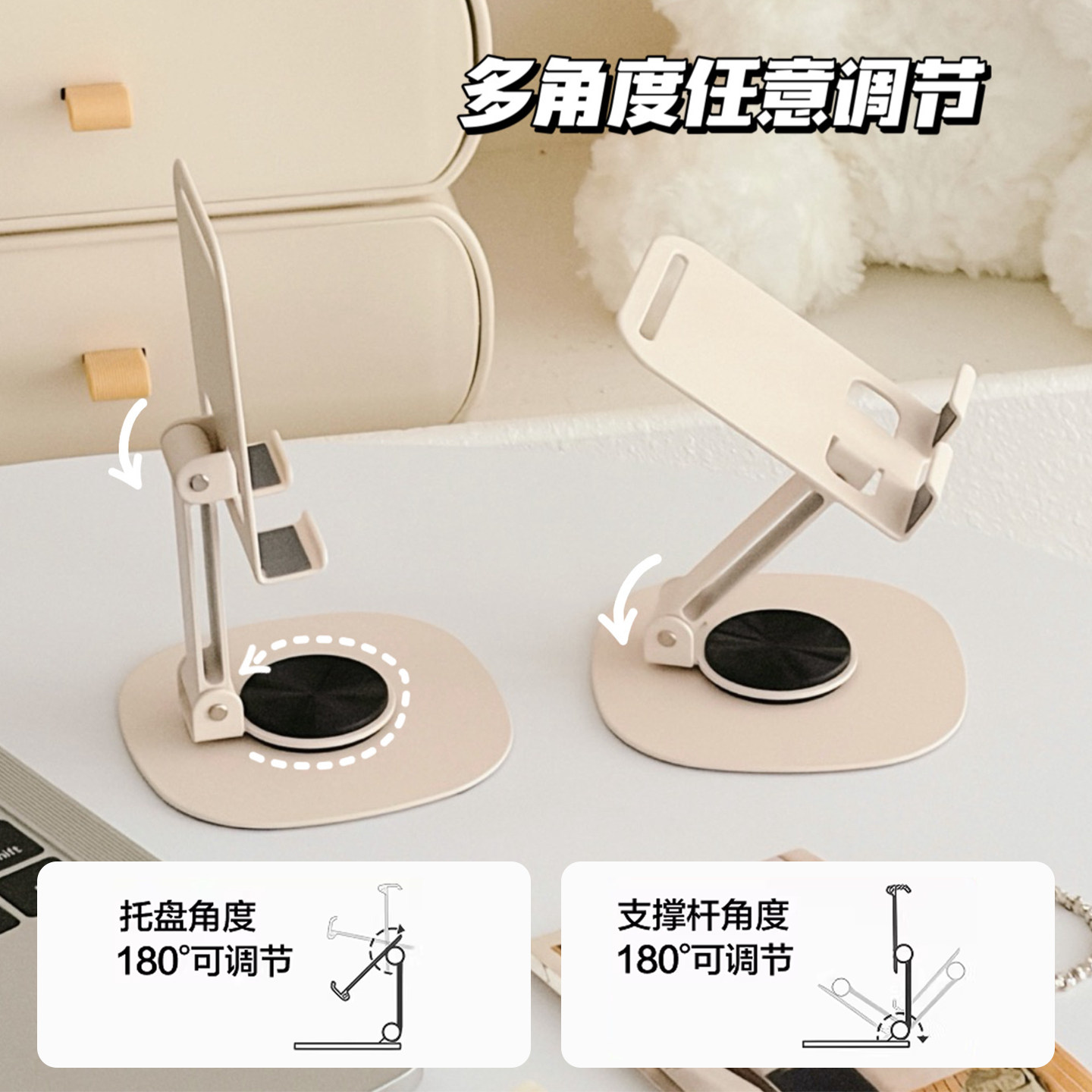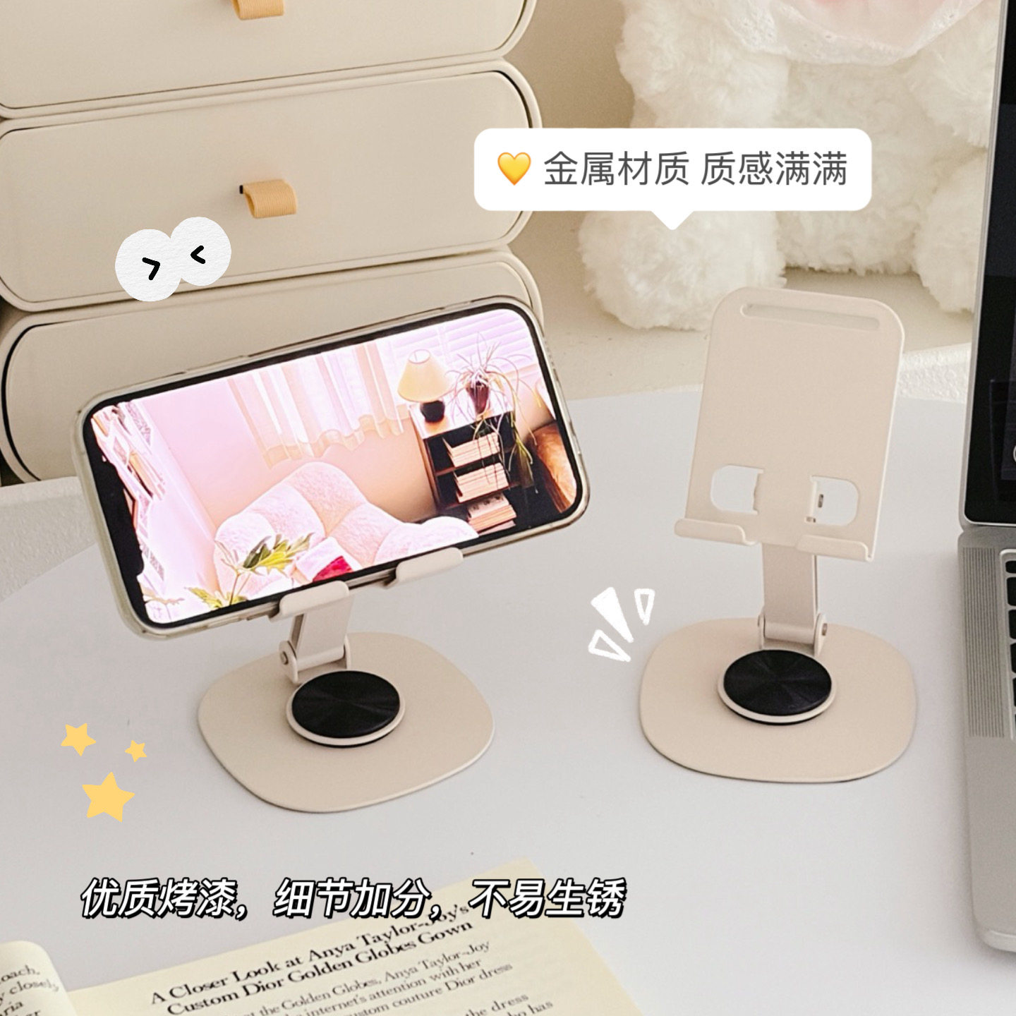 奶油米色金属手机支架桌面追剧神器可旋转调节高品质平板支架ins