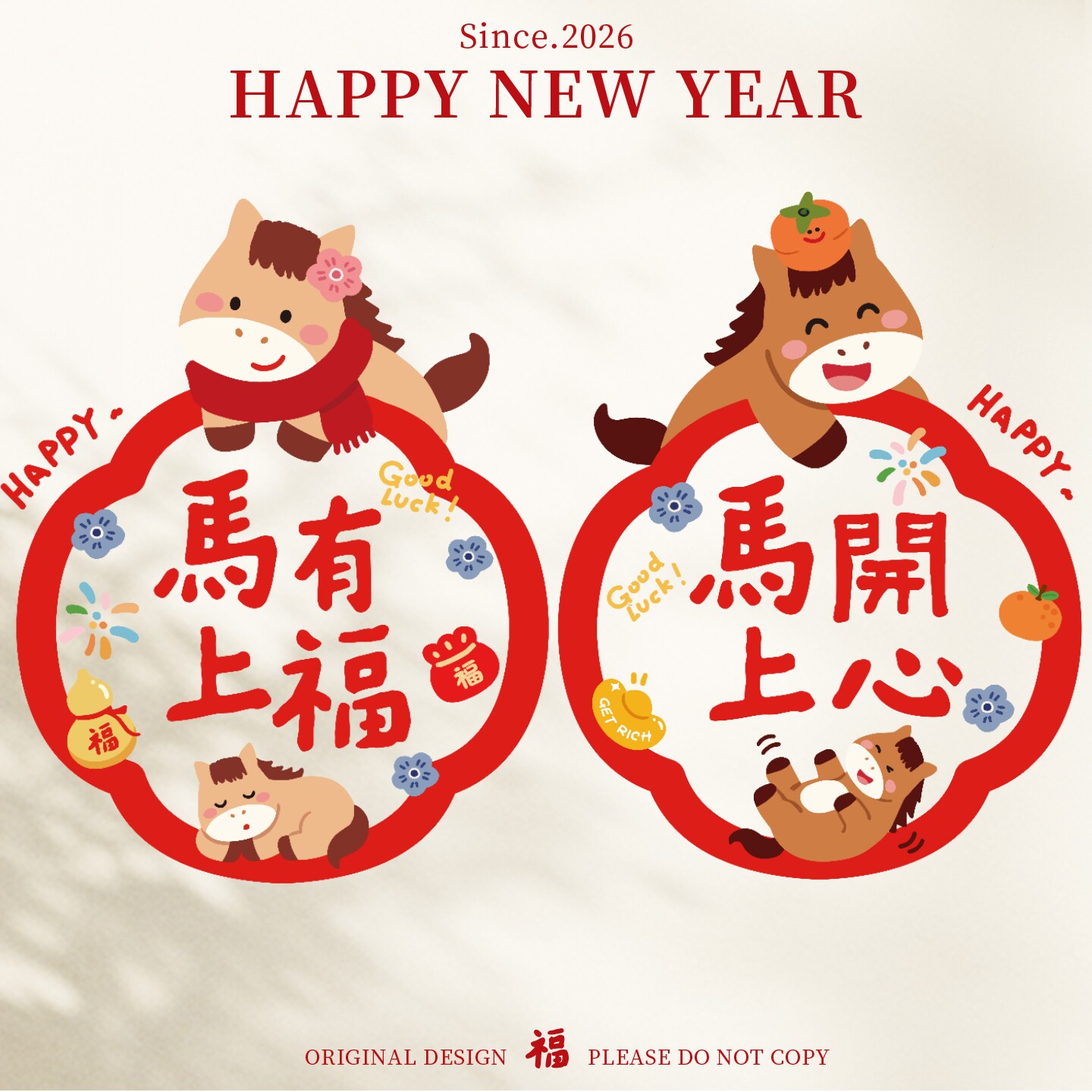 2026马年新款窗花春节静电玻璃门贴纸过年装饰布置新年福字橱窗贴