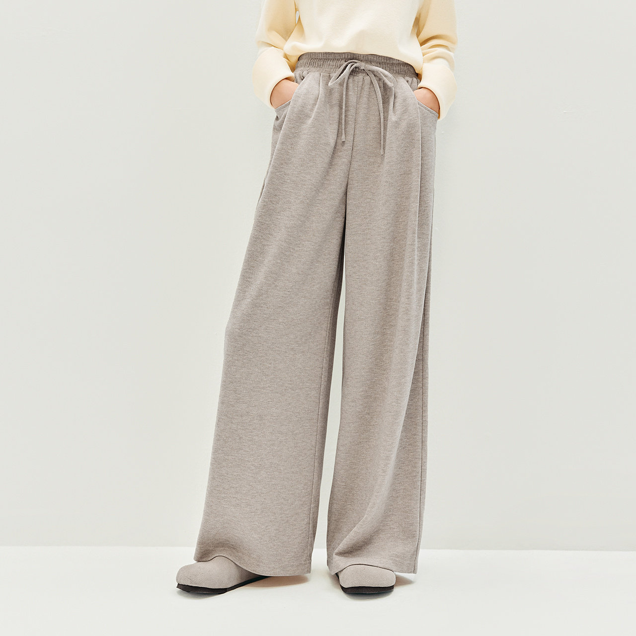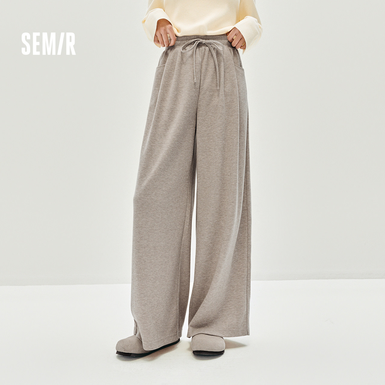 森马休闲裤女秋季打褶垂感宽松阔腿裤2025新款简约裤子慵懒糯米裤