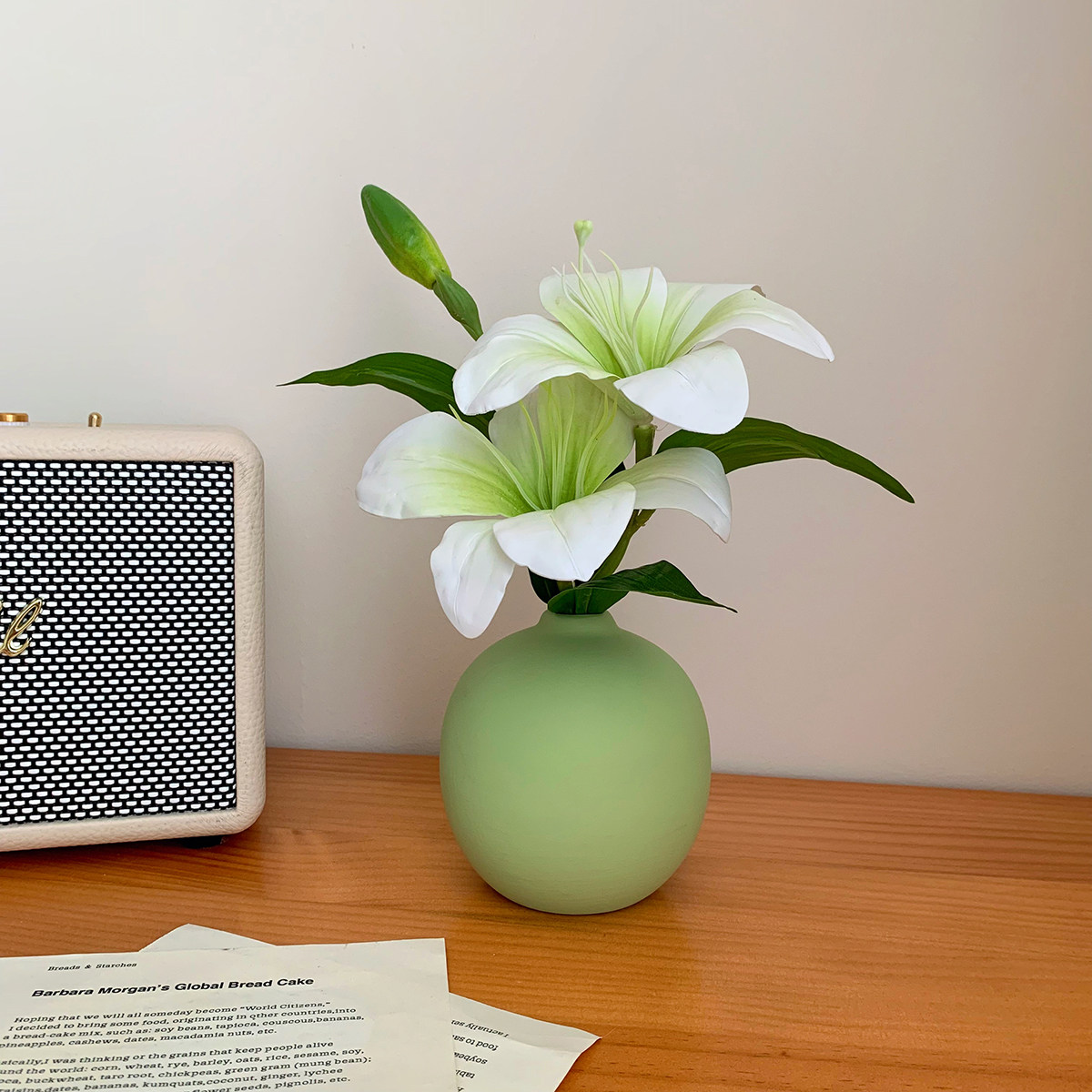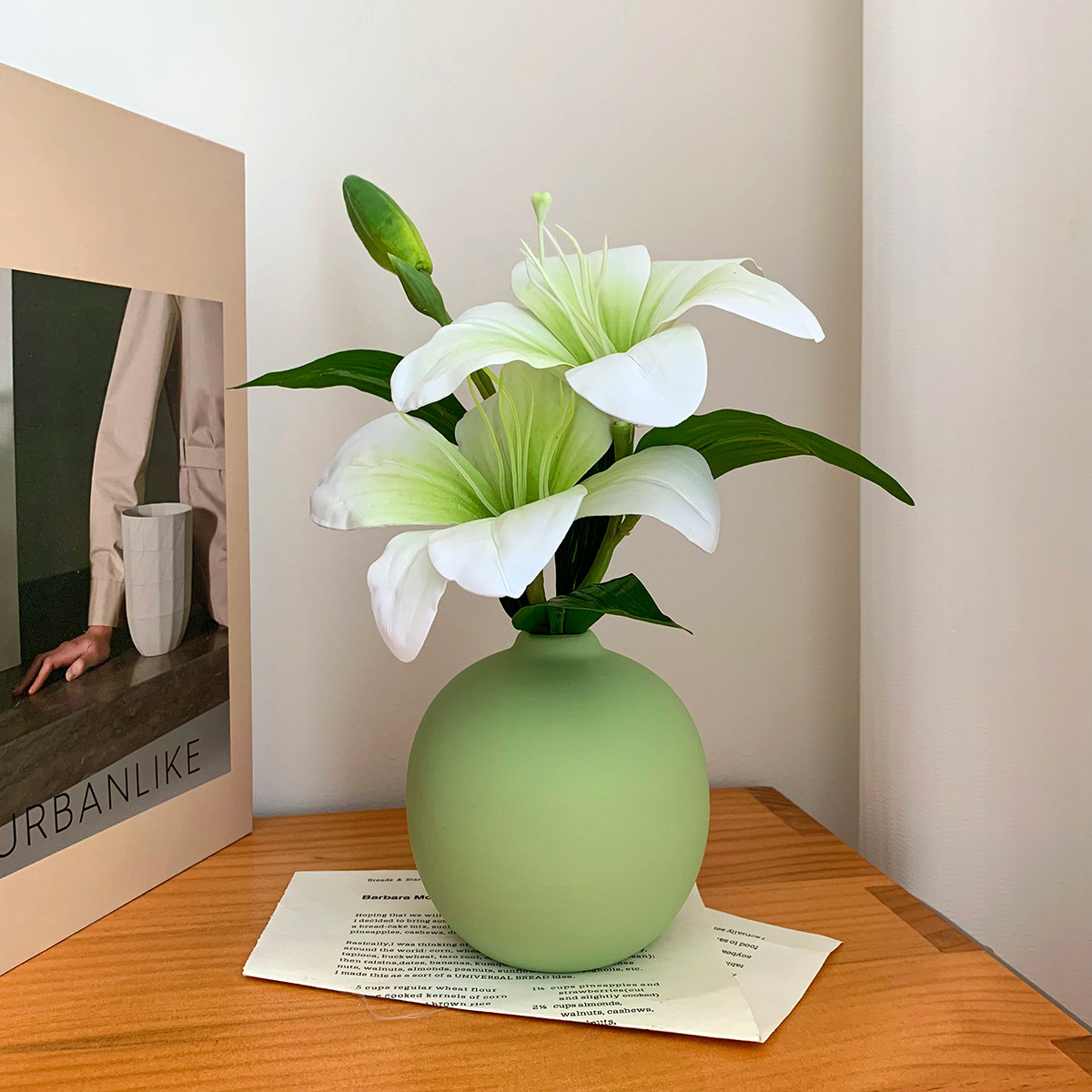 仿真百合花绿植物装饰花卉摆设客厅陶瓷花瓶轻奢高端假花花艺摆件