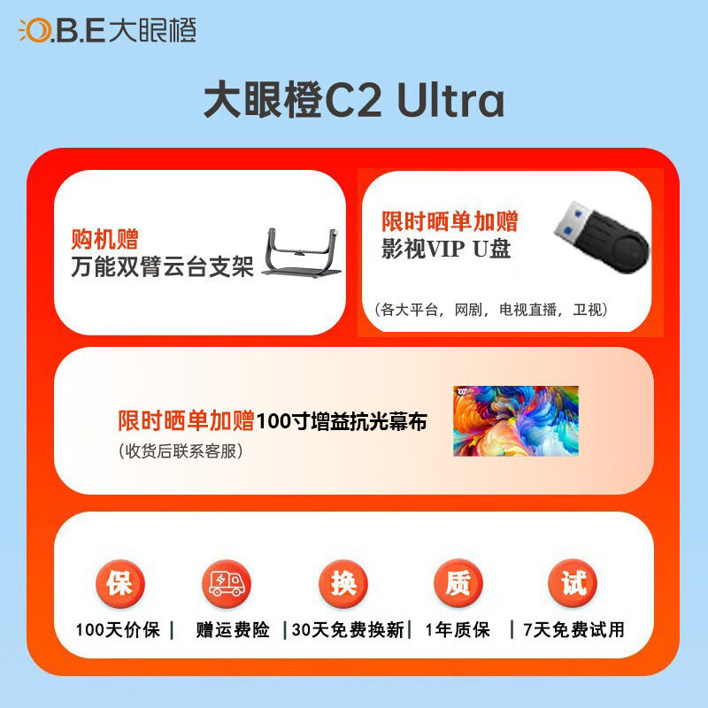 【全新正品】大眼橙C2 Ultra投影仪高亮家用高清投影机1080P智能便携8K解码家庭影院950lm