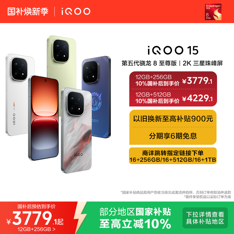 【享10%国补】vivo iQOO 15新品第五代骁龙8至尊版2K三星屏国补游戏手机iQOO官方旗舰店官网正品vivoiqoo15