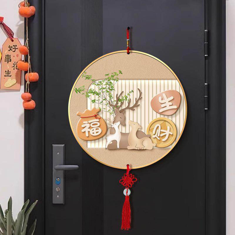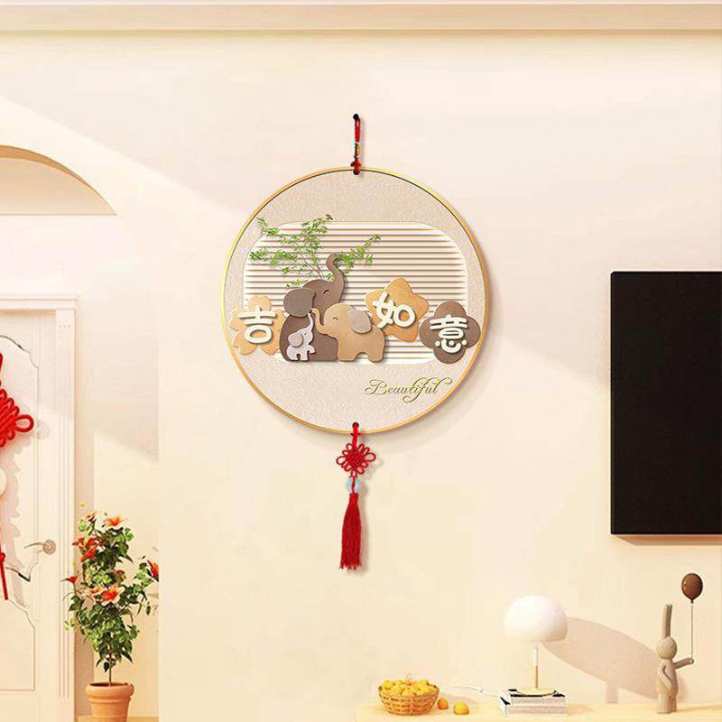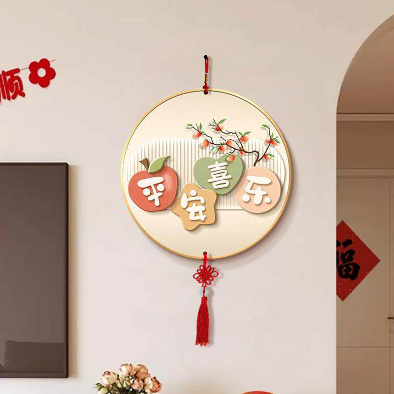 柿柿如意电视背景墙挂画圆形中国结挂饰新款客厅装饰画新中式挂件