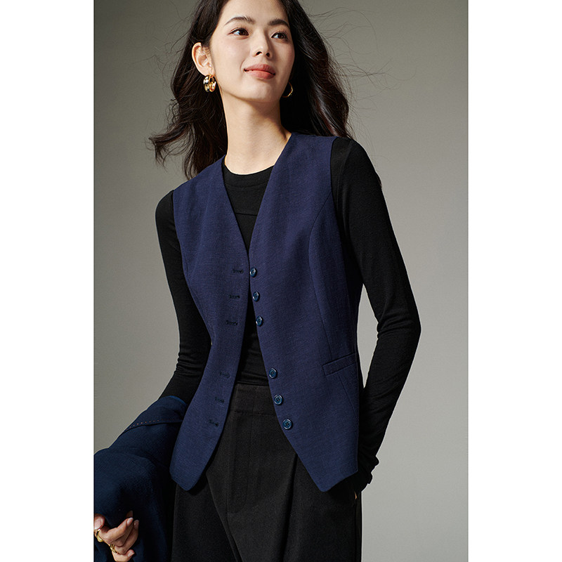 晚白【断码清仓】2026春莱赛尔亚麻V领上衣气质职场轻正装马甲女