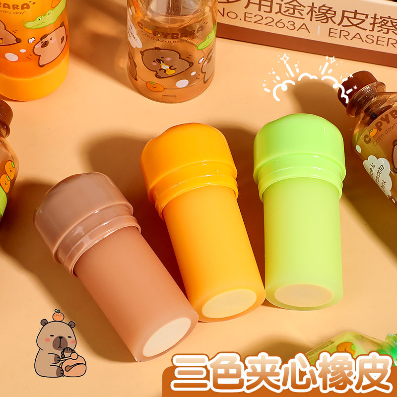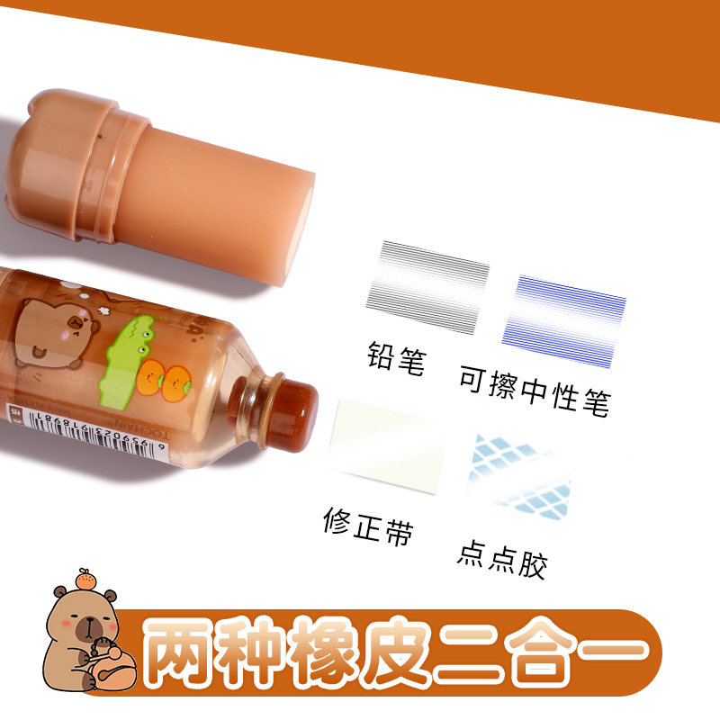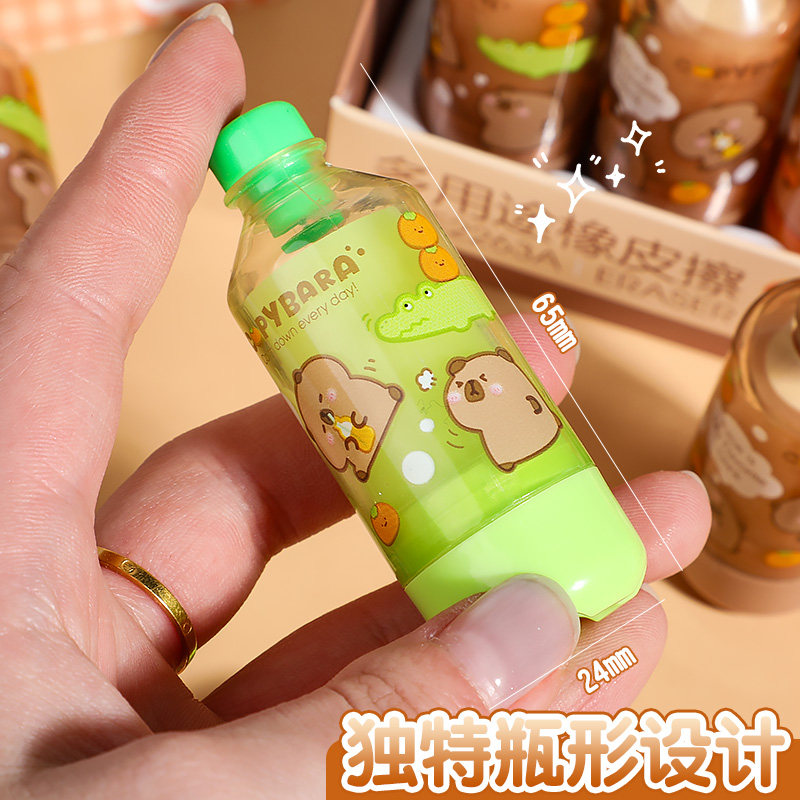 网红卡皮巴拉饮料瓶橡皮擦高颜值创意卡通可爱仿真汽水瓶干净少屑