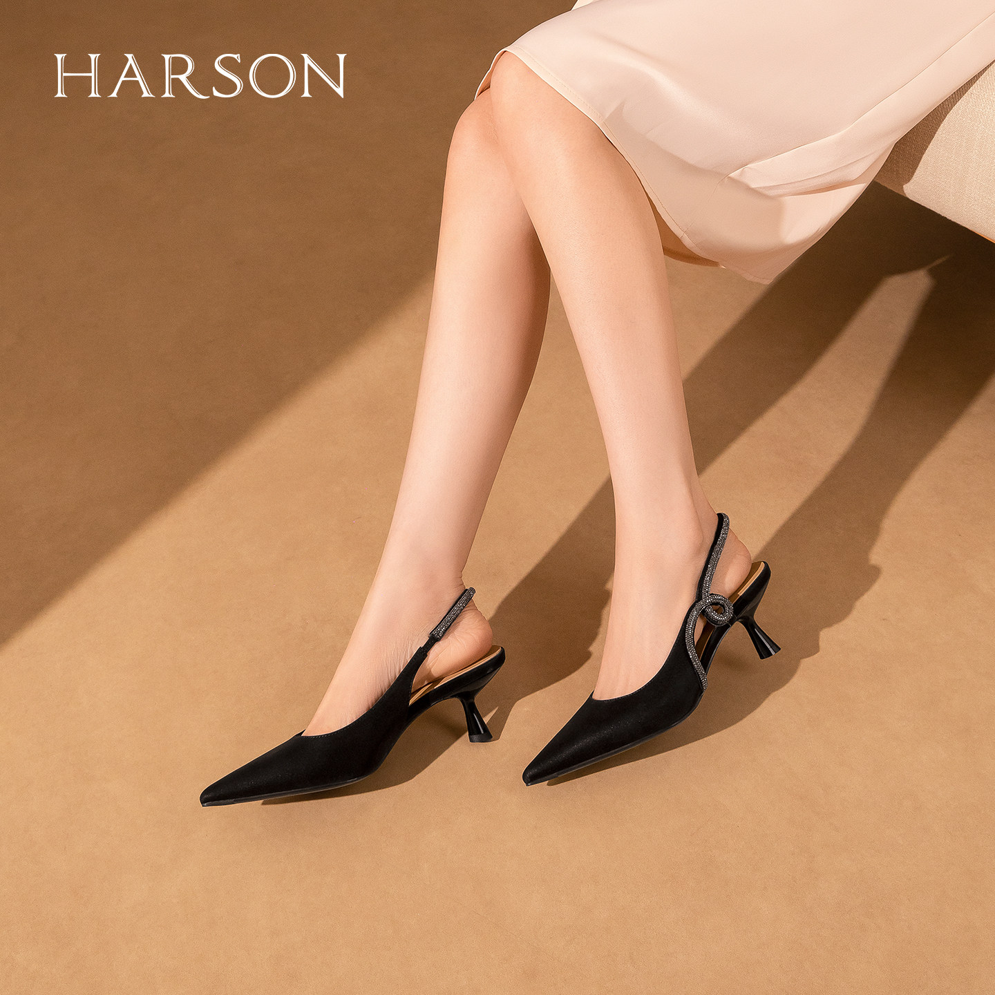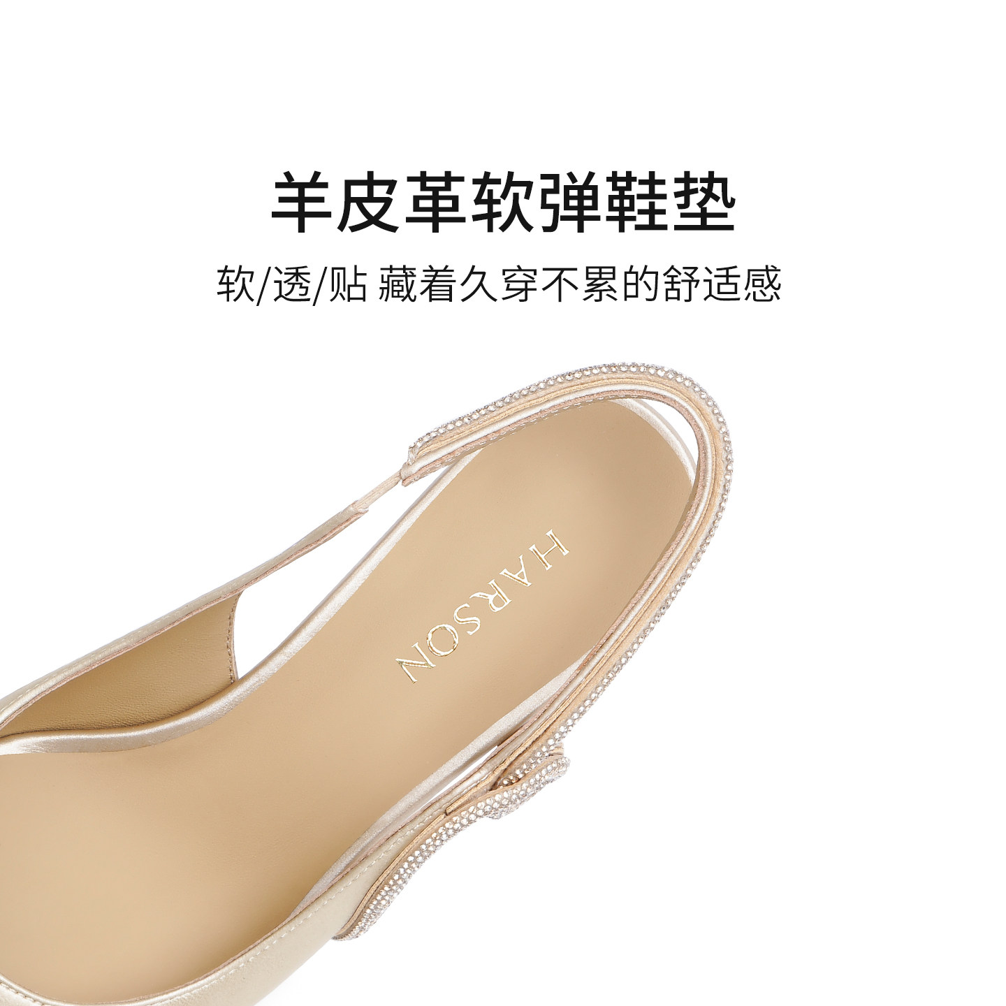 哈森2026新款尖头包头后空高跟时装凉鞋水钻饰带女鞋HWM260113