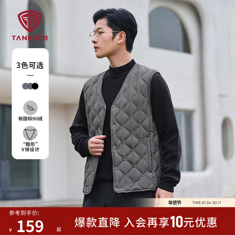 坦博尔秋季羽绒马甲男士轻薄时尚短款 v领外穿坎肩背心内胆暖外套