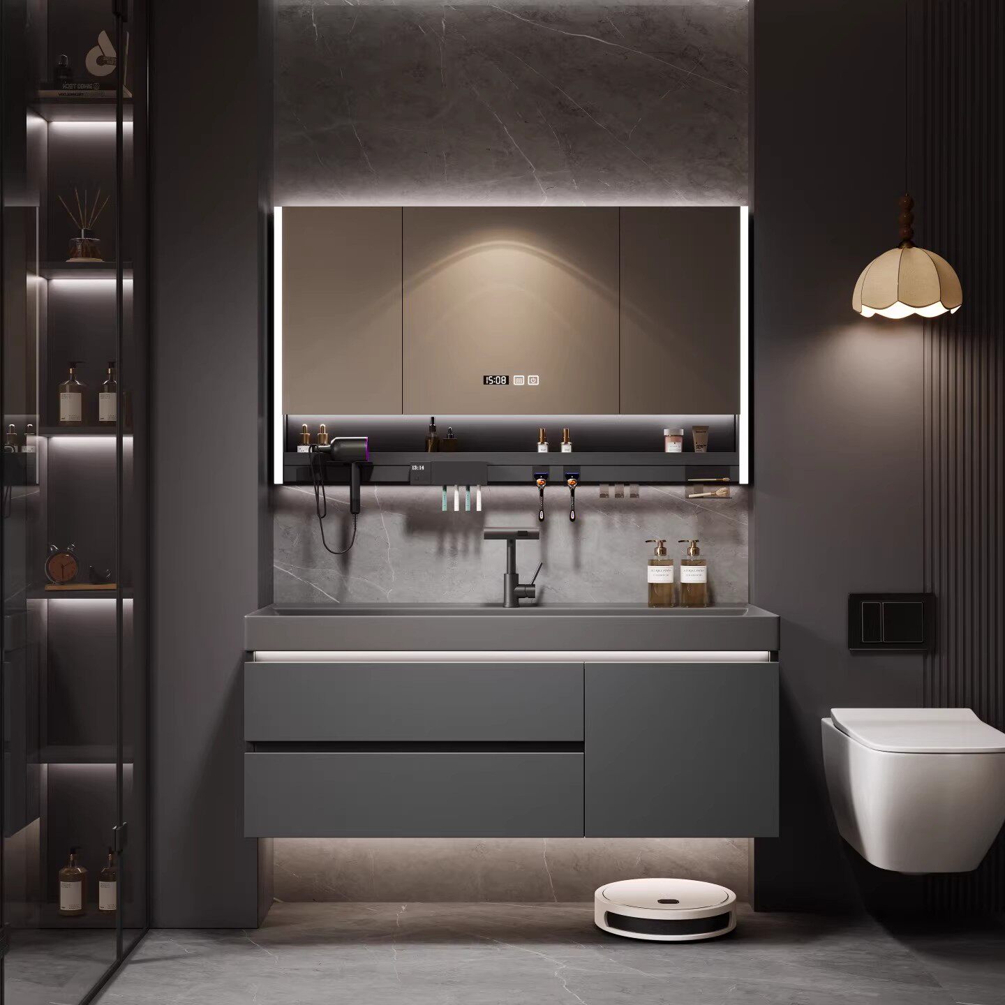 2026新款浴室柜鎏金石一体盆洗漱台轻奢风卫生间洗脸洗手池卫浴柜