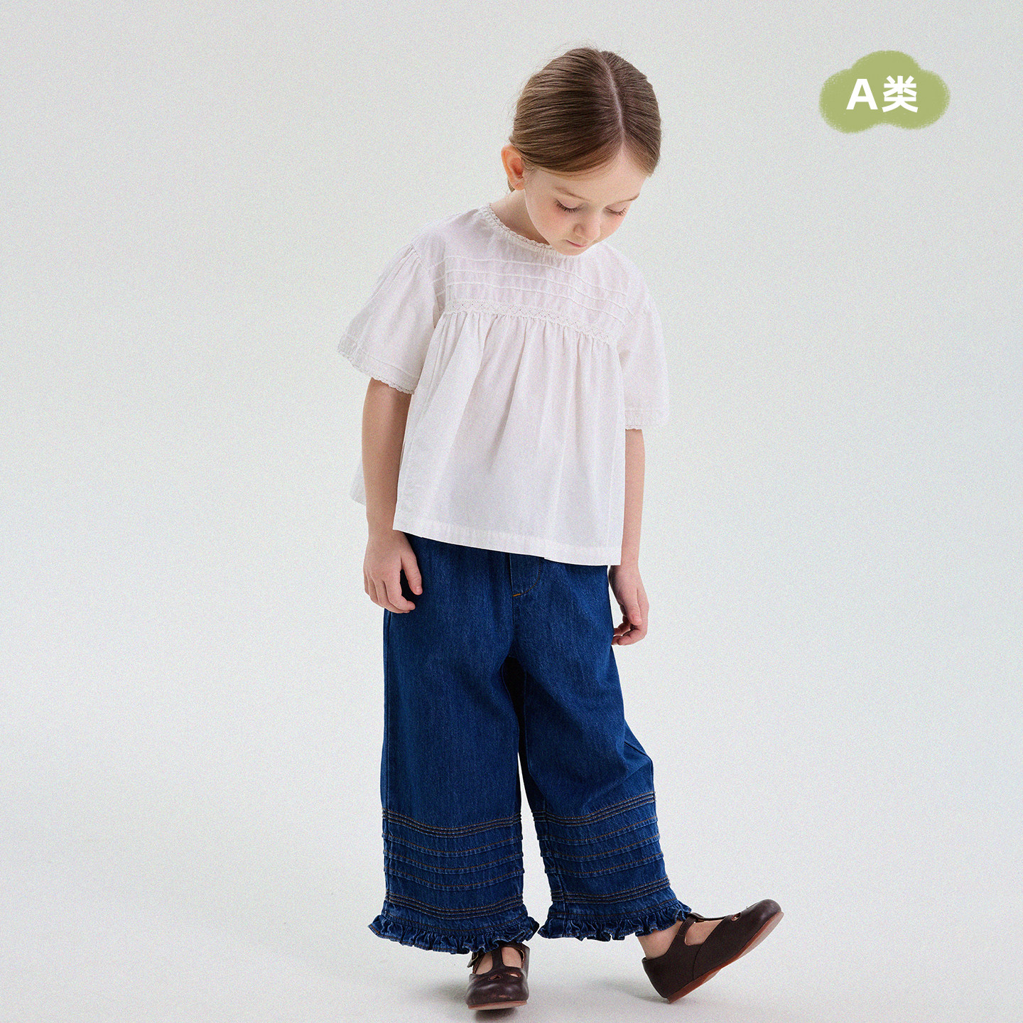 yummyrocky亲子亚麻舒适透气阔版女童衬衫外套/直筒裤/短裤