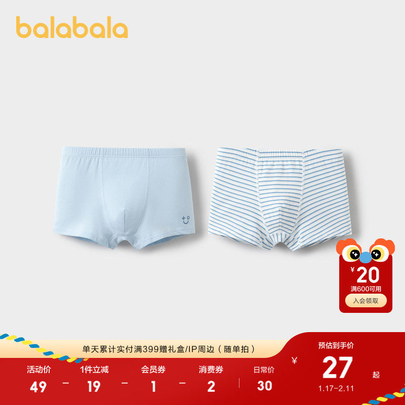巴拉巴拉男童内裤平角儿童四角短裤宝宝抑菌裆两条装舒适柔软萌趣