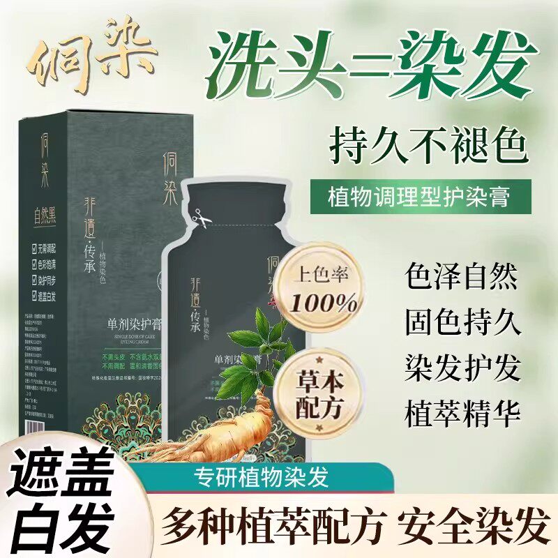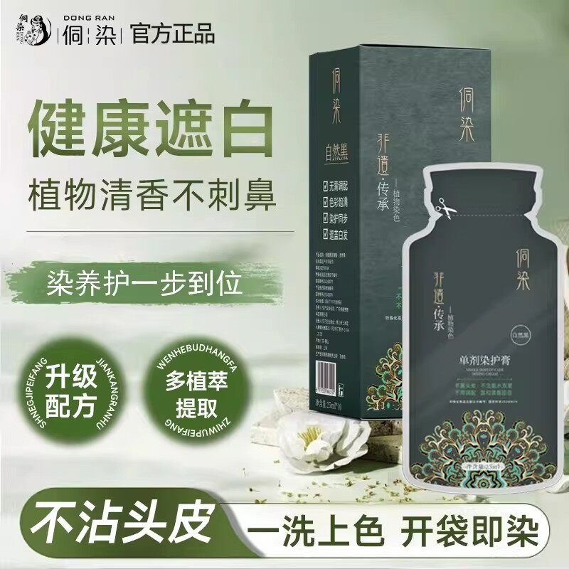 侗染单剂染发膏纯天然植物染发剂男女在家染不沾头皮官方旗舰店