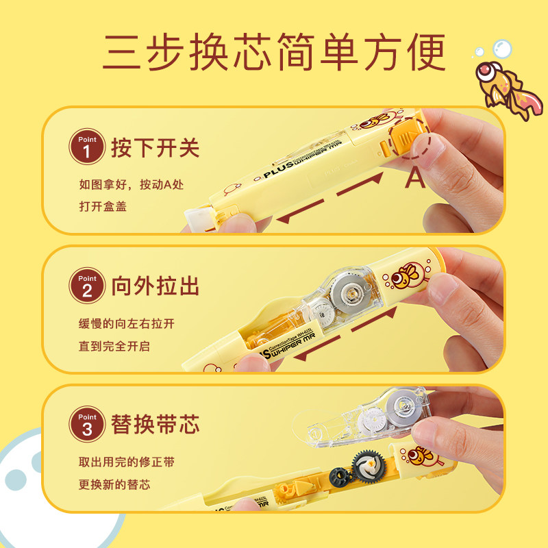 日本PLUS普乐士宝可梦联名皮卡丘学生修正带可换替芯涂改带改正带
