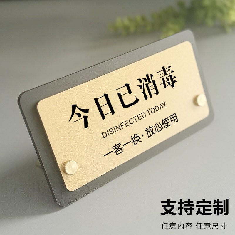 亚克力一客一换一消毒提示牌创意今日已消毒标识牌立牌酒店民宿客房美容院美甲店已消毒请放心使用台牌定制