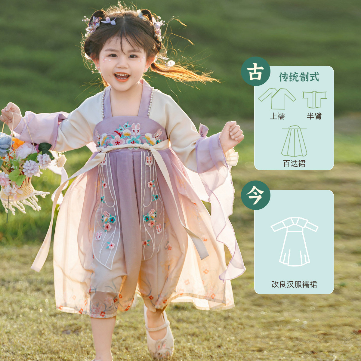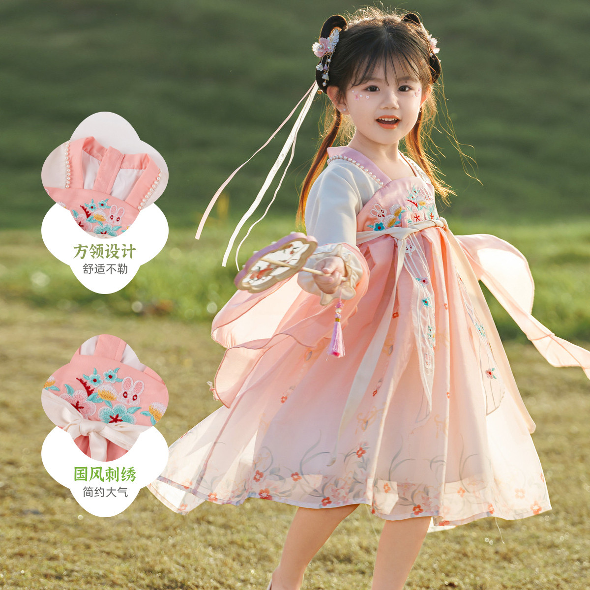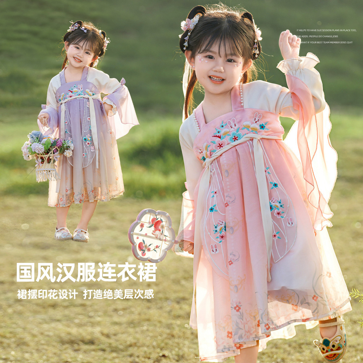 女童汉服长裙春秋款女宝中秋演出服女孩仙女国风连衣裙秋装裙子潮